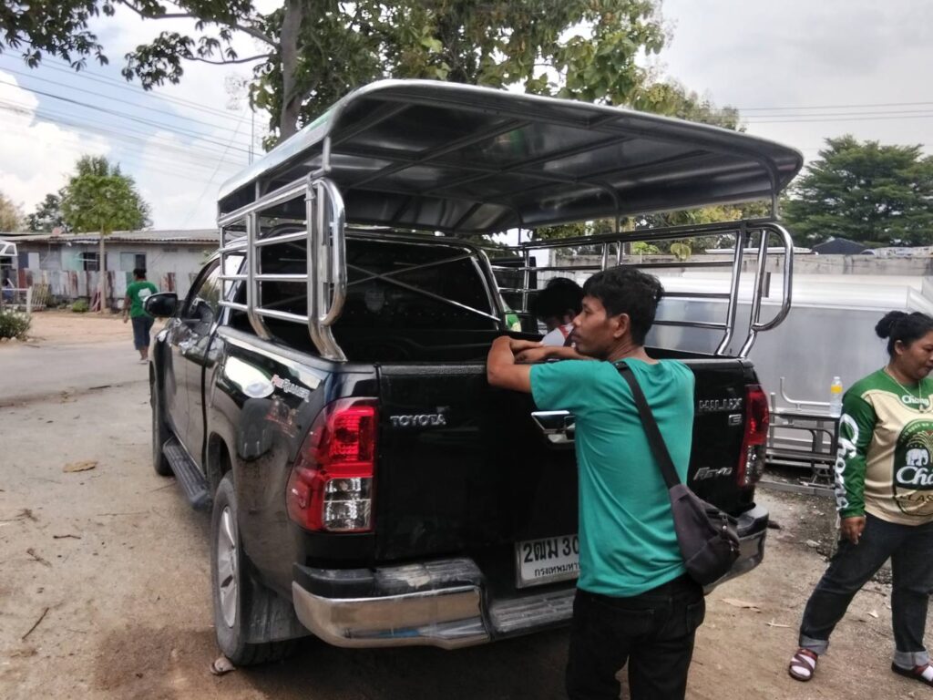 สวมคอกรถกระบะ หัวสั้น รถกระบะแค้ป สวมคอก หลังคาเสริมคอกกระบะ ติดตั้งกับรถกระบะแค้ป หลังคาทรงหัวสั้นถึงแค่แค้ป วัสดุเป็นโครงเหล็กแปีบขนาด 1/2 นิ้ว ทำสีรองพื้นและสีบรอนด์ หุ้มด้วยวัสดุแผ่นอลูมิเนียมเกรด 1100 หนา…