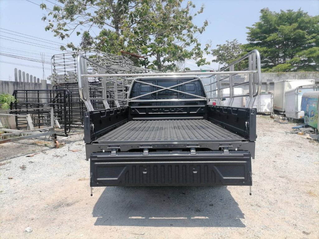 hilux champ คอกบรรทุกเหล็ก+เสริมแหนบ hilux champ, ไฮลักซ์แชมป์ คอกบรรทุกเหล็ก รับน้ำหนัก 4 ตัน โครงสร้างเป็นเหล็กรางน้ำ 3 นิ้ว ทำสีดำ ยึดติดกับกระบะพื้นเรียบ