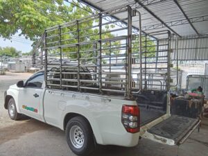 คอกประปาแซมเลส สูง 1.35 เมตรเสียบท้ายทรงย้อยกลอนล๊อคฝาท้ายสแตนเลสติดตั้งกับรถกระบะตอนเดียวเสริมแหนบ เพลาลอย ล้อบรรทุก ...