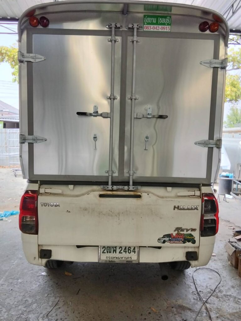 ตู้ทึบ revo สูง 2.1 เมตร ตู้ทึบ หลังคารถกระบะตู้ทึบ หุ้มด้านนอกด้วยแผ่นอลูมิเนียมเกรด 1100 โครงสร้างเป็นเหล็กแป้บดำทำสีบรอนด์ ประตูท้ายเปิดออกข้าง ซา้ย ขวา 2 บาน ไฟท้าย…