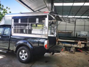 ประตูตาแกรงเหล็ก+เปิดขึ้น มีผ้าใบสามารถม้วนพับเก็บได้หลังคาอลูมิเนียมความสูง 1.80 เมตรประตูเปิด 3 ด้าน ซ้าย ขวา ประตูท้ายค้ำประตูด้วยโช๊คสลัก 6 ตัวโครงสร้างเป็นเหล็กแป๊บทำสีรองพื้น สีบรอนด์หุ้มด้วยแผ่นอลูมิเนียมเกรด 1100 หนา 0.65 ...