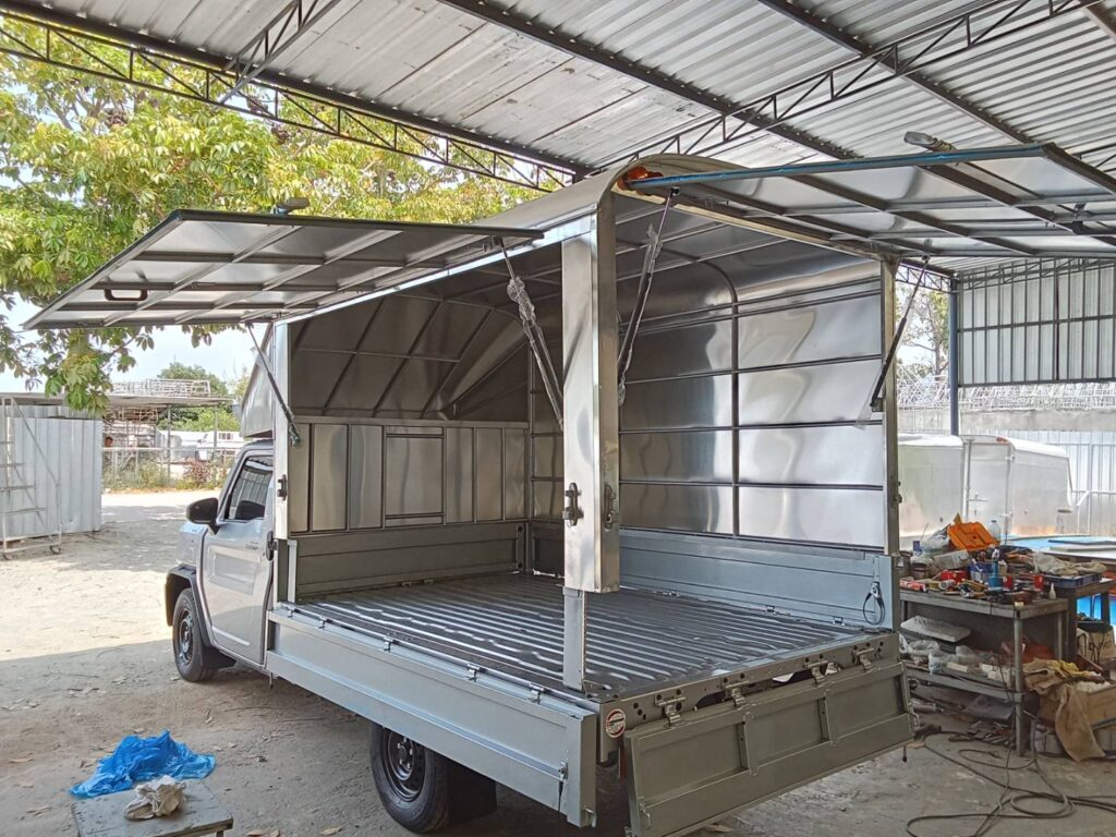***สะดวกต่อการบรรทุกสนิค้า หลังคาเปิดขึ้น+เปิดฝาข้างกระบะรถได้