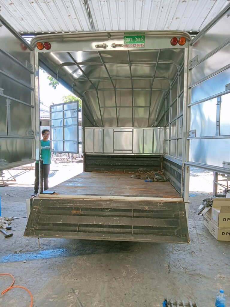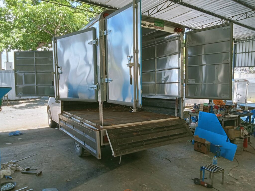 ตู้ทึบเปิดประตู 4 บานติดตั้งกับกระบะพื้นเรียบ Leave a Comment / กระบะเหล็ก / By อู่สยาม ชลบุรี ตู้ทึบประตูเปิด 4 บาน ติดตั้งกับกระบะพื้นเรียบ ช่วยป้องกันน้ำ แดด สะดวกในการขนส่ง บรรทุกสินค้า สามารถขนสินค้าขึ้นด้านท้ายรถ หรือ ด้านข้างก็ได้ หลากหลายในการใช้งาน ตามสะดวกในการจอดรถ
