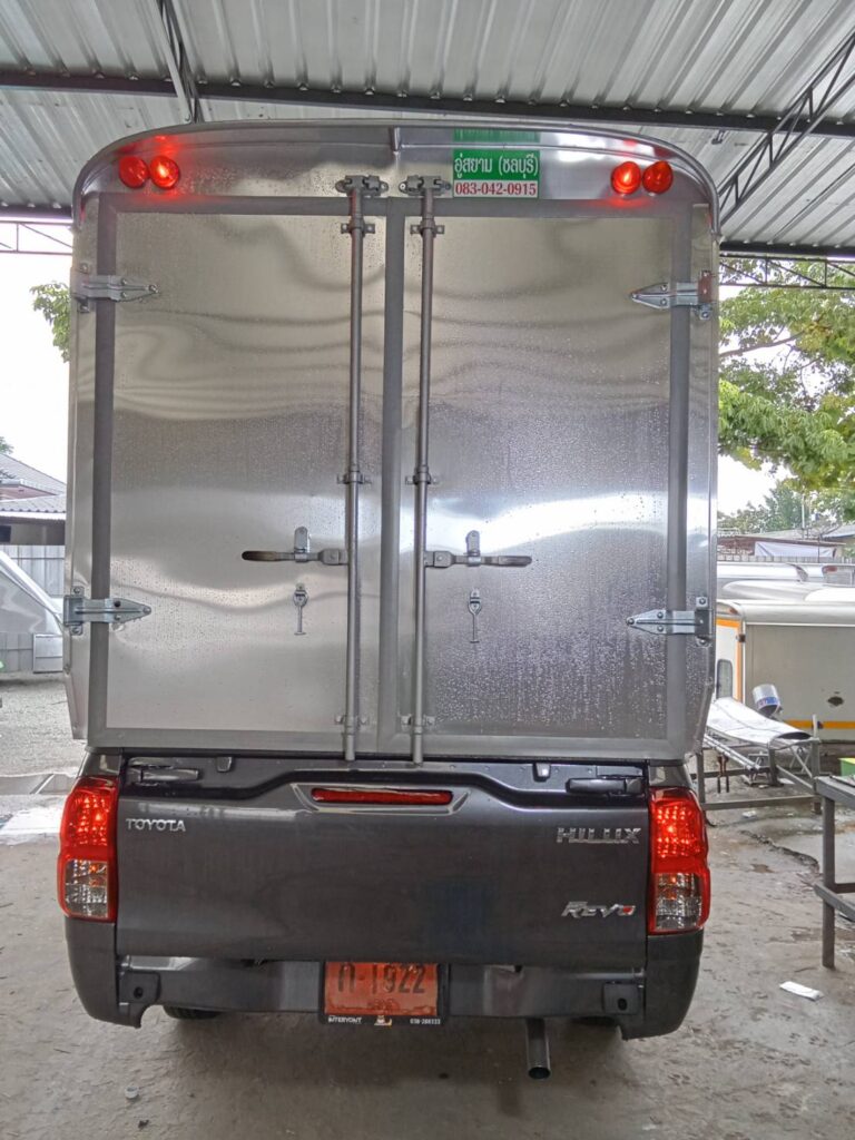ตู้ทึบ revo สูง 2.1 เมตร ตู้ทึบ หลังคารถกระบะตู้ทึบ หุ้มด้านนอกด้วยแผ่นอลูมิเนียมเกรด 1100 โครงสร้างเป็นเหล็กแป้บดำทำสีบรอนด์ ประตูท้ายเปิดออกข้าง ซา้ย ขวา 2 บาน ไฟท้าย…