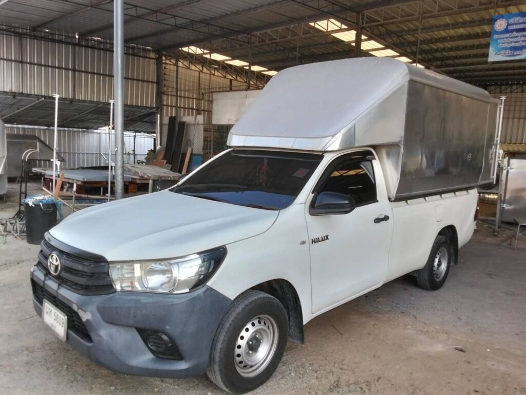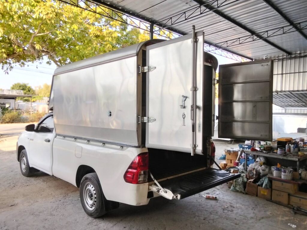 หลังคารถกระบะตู้ทึบตอนเดียว สูง 2.10 เมตร ตู้ทึบ ตู้ทึบหลังคารถกระบะ ช่วงยาว สูงจากพื้นดิจ 2.80 เมตร และสูงจากพื้นกระบะรถ 2.10 เมตร โครงสร้างทั่วไปเป็นเหล็กแป้บทำสีบรอนด์ หุ้มด้านนอกด้วยแผ่นอลูมิเนียมหนา …
