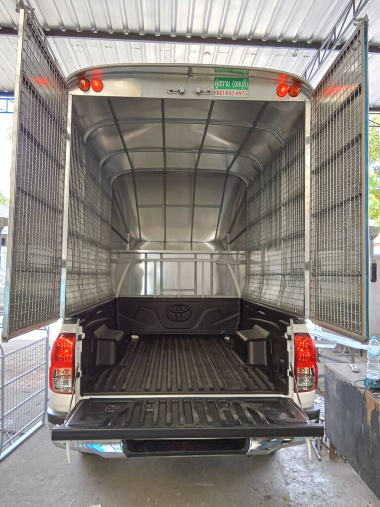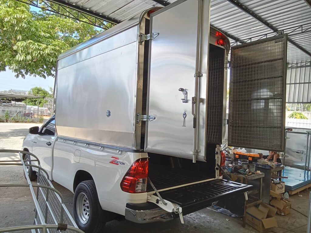 ตู้ทึบหลังคารถกระบะ ช่วงยาว ด้านบุด้วยตาแกรงเหล็ก 3 ด้าน ซ้าย ขวา ประตูท้าย  สูงจากพื้นดิจ 2.80 เมตร และสูงจากพื้นกระบะรถ 2.10 เมตร โครงสร้างทั่วไปเป็นเหล็กแป้บทำสีบรอนด์ หุ้มด้านนอกด้วยแผ่นอลูมิเนียมหนา  0.70 มิลลิเมตร ไม่บุด้านใน ประตูท้ายเปิดออกด้านข้าง ซ้าย ขวา ไฟท้ายตู้ตามขนส่งกำหนด เป็นไฟหลี่ ไฟเลี้ยว ผลิตตามความต้องการของลูกค้า ติดตั้งกับรถกระบะ โตโยต้า รีโว่ ตอนเดียว