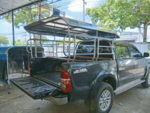 ติดตั้งคอกและหลังคาสวม แบบถอดได้กับรถกระบะ 4 ประตู กันแดด ฝน หลังคาเป็นทรงเตี้ยสูงจากขอบคอกสแตนเลสประมาณ 25 เซนติเมตร ...