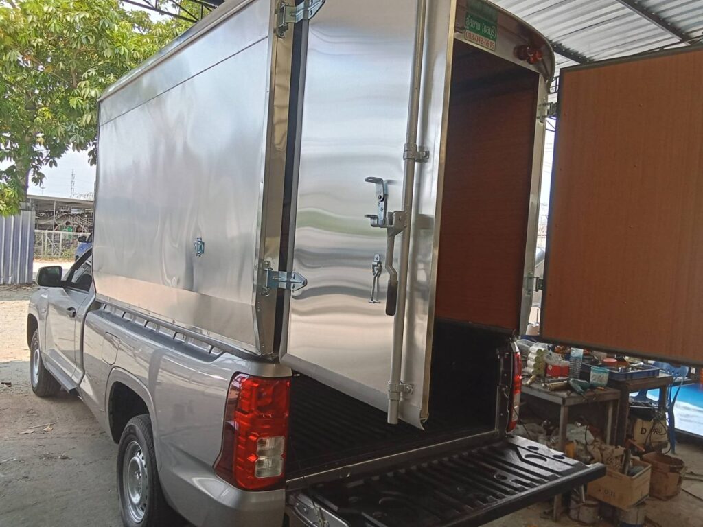ตู้ทึบอลูมิเนียม หลังคารถกระบะความสูง 2.10 เมตร ตู้ทึบ หลังคาตู้ทึบ หลังคาด้านบนเป็นทรงเหลี่ยม ติดตั้งกับรถกระบะตอนเดียว ความสูงของหลังคา 2.10 เมตร วัดจากพื้นกระบะถึงบนสุดของหลังคา ด้านในบุด้วยโฟมและบุทับด้วยไม้อัดอีกรอบ ลูกค้าใช้งานแบบป้องกันความร้อน บุป้องกันความร้อนรอบคัน…
