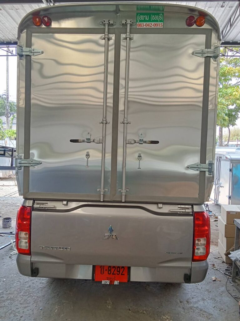 ไทไททัน ตอนเดียว ทึบ2.1+ไม้ 3 ด้าน / ตู้ทึบ / By อู่สยาม ชลบุรี หลังคารถกระบะตอนเดียว โครงสร้างเป็นเหล็กแป้บป้องกันสนิม หุ้มด้านนอกด้วยแผ่นอลูมิเนียมหนา 0.70 มิลลิเมตร ด้านในบุด้วยไม้อัด ความสูงจากพื้นกระบะถึงหลังคาบนสุด 2.10 เมตร ไฟท้ายเป็นไฟหลี่ ไฟเลี้ยว