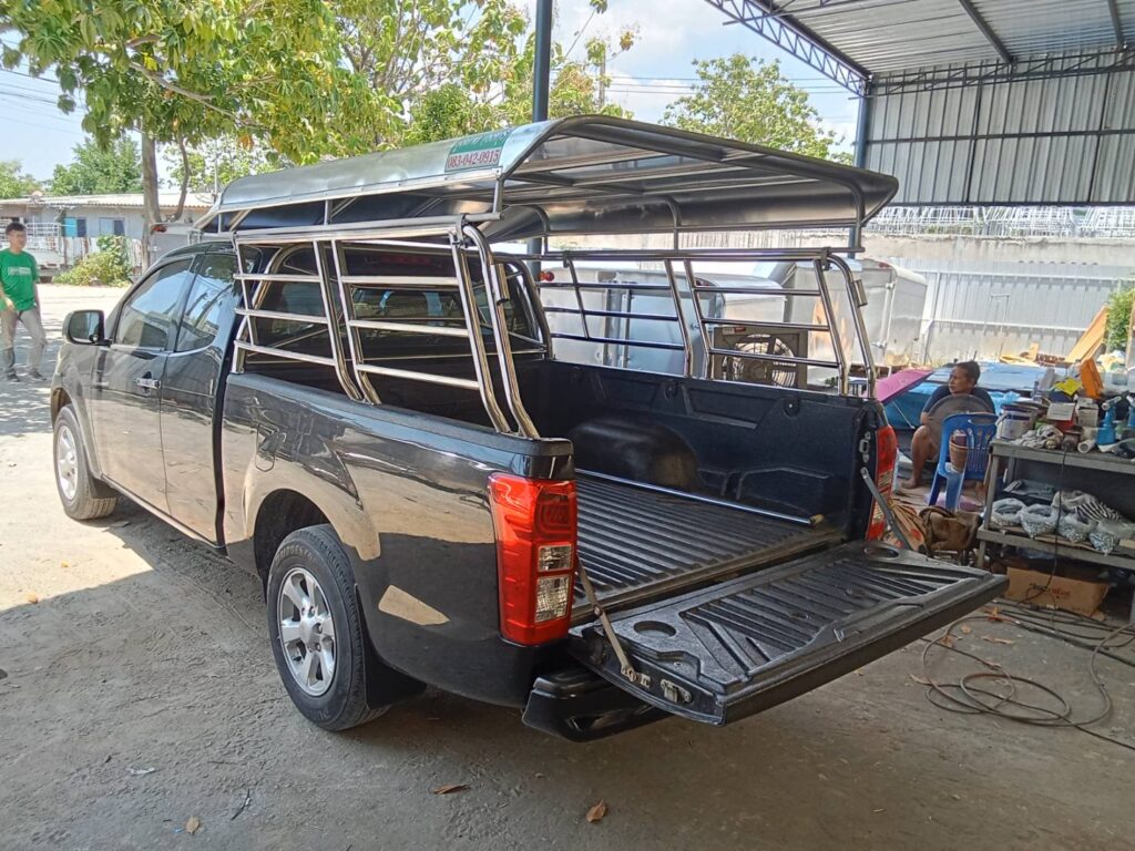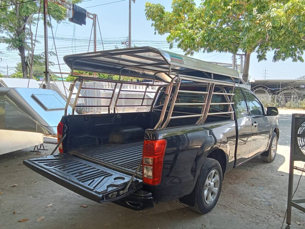 หลังคาสวมคอก+คอกสแตนเลส สวมคอก หลังคารถกระบะแบบถอดได้ วัสดุเป็นโครงเหล็กแปีบขนาด 1/2 นิ้ว ทำสีรองพื้นและสีบรอนด์ หุ้มด้วยวัสดุแผ่นอลูมิเนียมเกรด 1100 หนา 0.65 มิลลิเมตร…