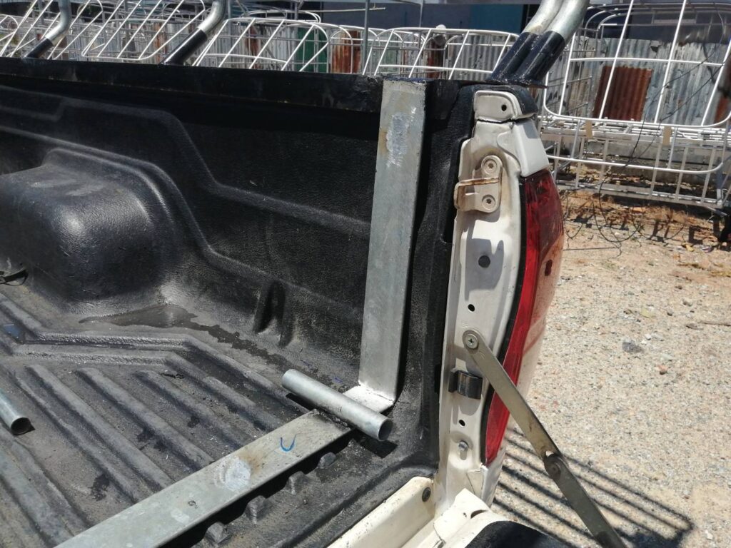 vigo ตอนครึ่ง คอกประปาล้วน 1.20 เมตร คอกประปา คอกบรรทุก คอกประปาล้วนสูง 1.20 เมตร เสียบท้ายทรงย้อย กลอนล๊อคฝาท้ายสแตนเลส ติดตั้งกับรถกระบะแค้ป