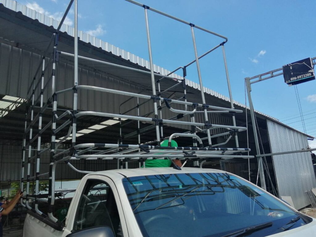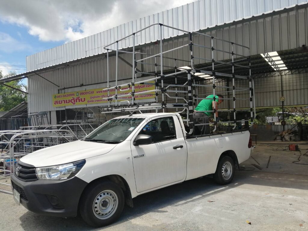 คอกแป๊ป+พับสูง / คอกประปา คอกบรรทุก / By อู่สยาม ชลบุรี คอกประปาล้วนสูง 1.50 เมตร + 2 ชั้น เสียบท้ายทรงตรง กลอนล๊อคฝาท้ายสแตนเลส ติดตั้งกับรถกระบะตอนเดียว