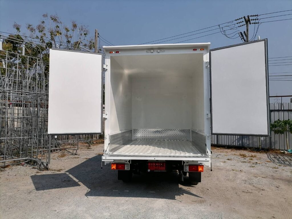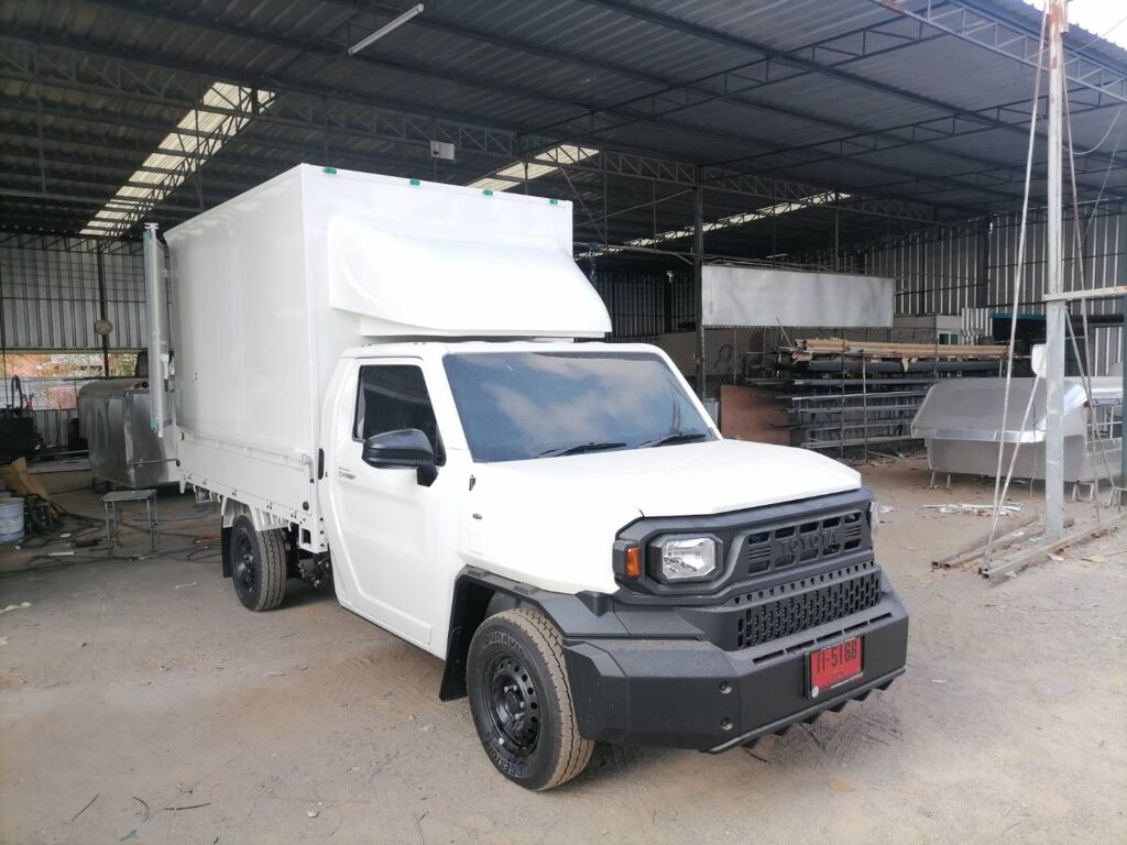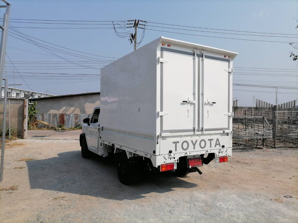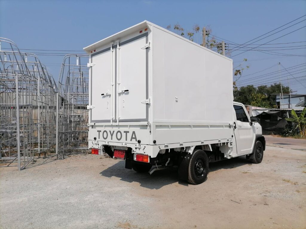 ไฮลักซ์แชมป์ ตู้แห้งครึ่งใบ hilux champ, ตู้แห้ง, ตู้แห้งครึ่งใบ, ไฮลักซ์แชมป์ โครงสร้างเป็นเหล็กแป๊บป้องกันสนิม วัสดุบุหุ้มด้านนอกและในด้วยแผ่นอลูมิเนียม และโฟมฉนวนกันความร้อน หมวกลูลมด้านหน้าเป็นไฟเบอร์ ประตูท้ายเปิดออกข้าง 2 บาน ซ้าย ขวา ล็อคด้วยเขี้ยวคู่ขนาน…