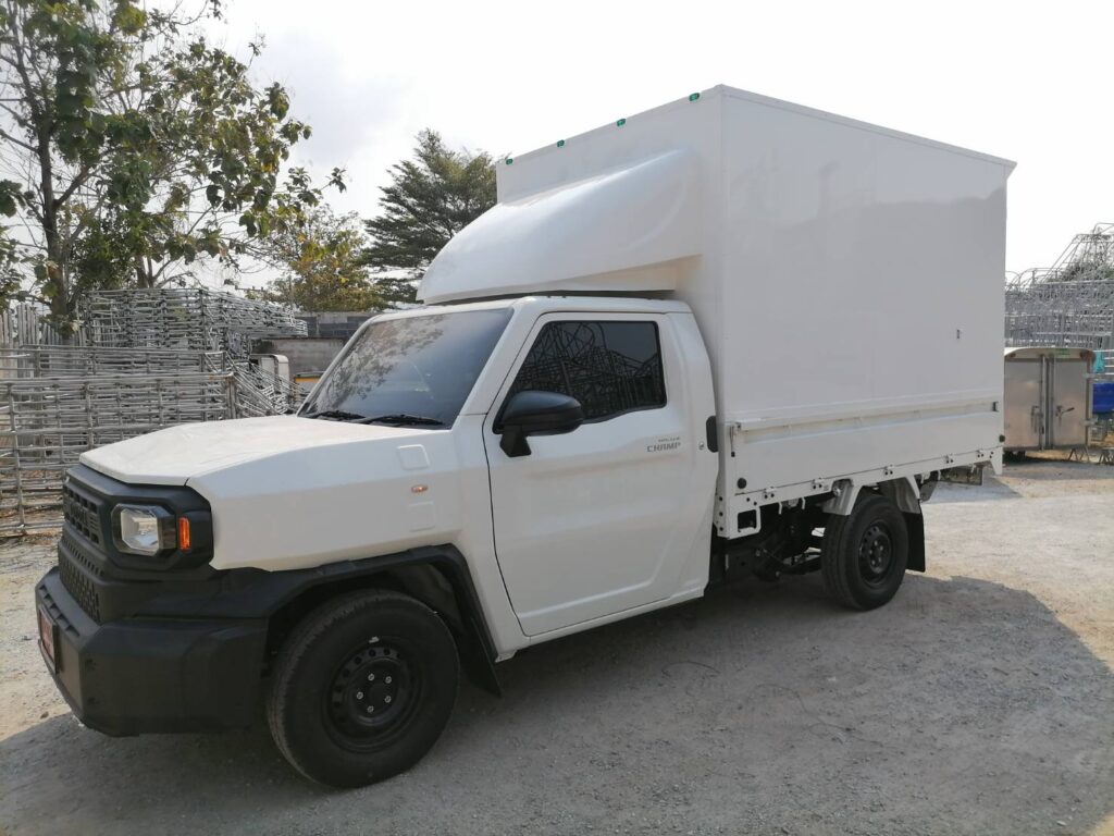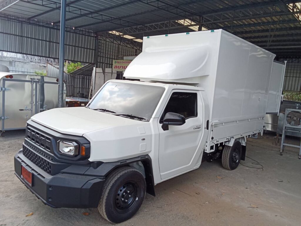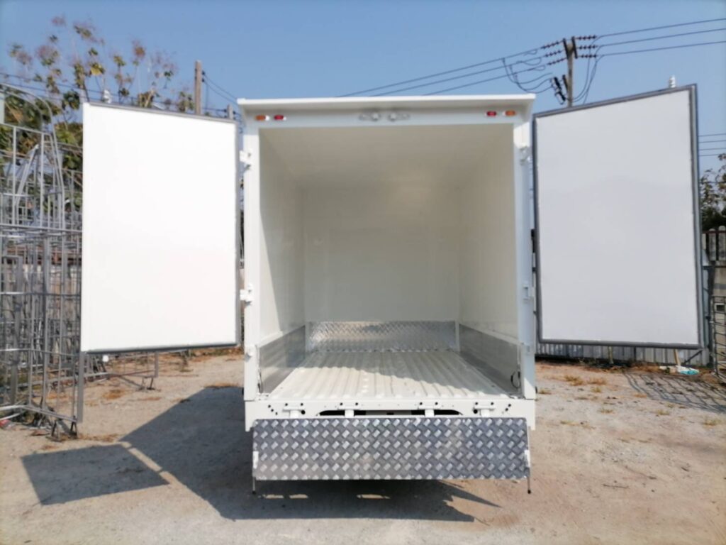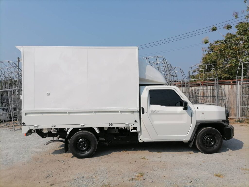 ไฮลักซ์แชมป์ ตู้แห้งครึ่งใบ hilux champ, ตู้แห้ง, ตู้แห้งครึ่งใบ, ไฮลักซ์แชมป์ โครงสร้างเป็นเหล็กแป๊บป้องกันสนิม วัสดุบุหุ้มด้านนอกและในด้วยแผ่นอลูมิเนียม และโฟมฉนวนกันความร้อน หมวกลูลมด้านหน้าเป็นไฟเบอร์ ประตูท้ายเปิดออกข้าง 2 บาน ซ้าย ขวา ล็อคด้วยเขี้ยวคู่ขนาน…