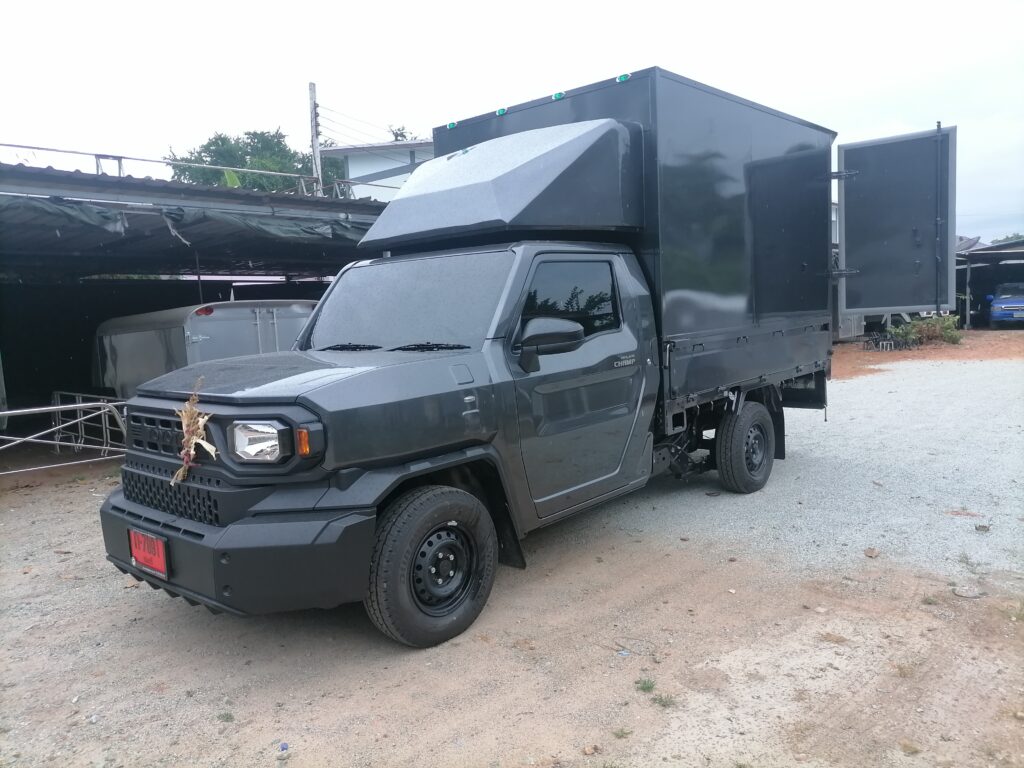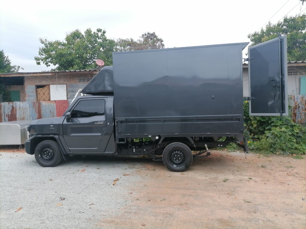 ตู้แห้งครึ่งใบ ความสูงวัดใน 1.80 เมตร สีเทาดำ / hilux champ, ไฮลักซ์แชมป์ / By อู่สยาม ชลบุรี ตู้แห้งกันความร้อน สีเทาดำด้านในและนอก ปิดรูด้านล่าง เสริมแหนบรับน้ำหนัก 2.50 ตัน