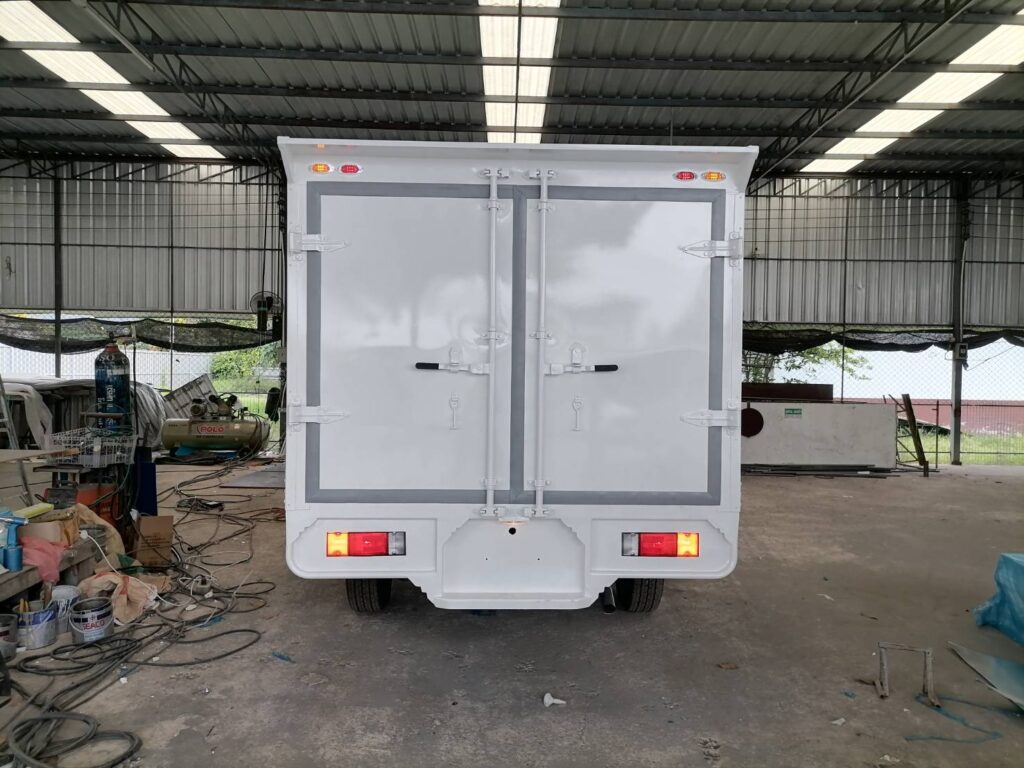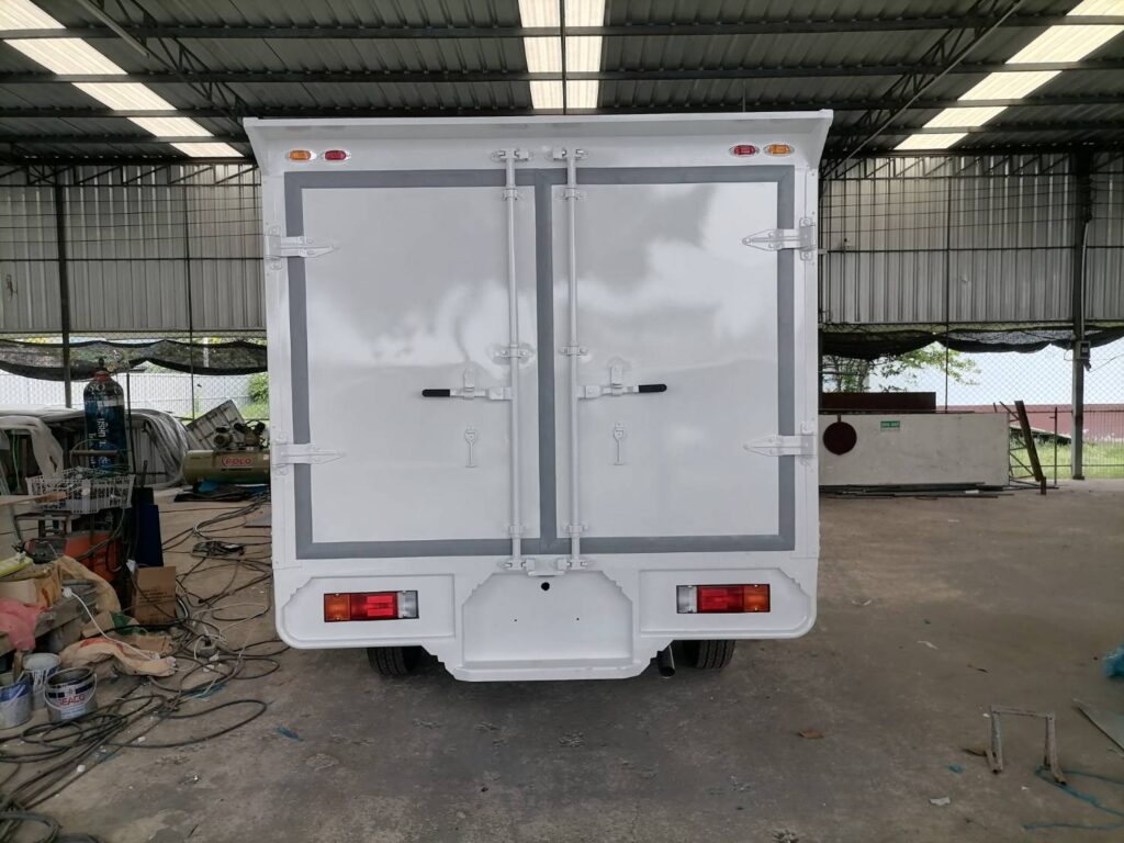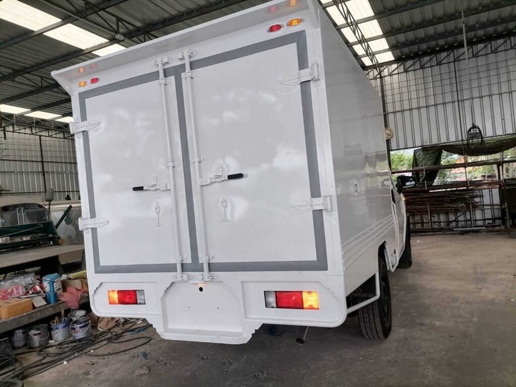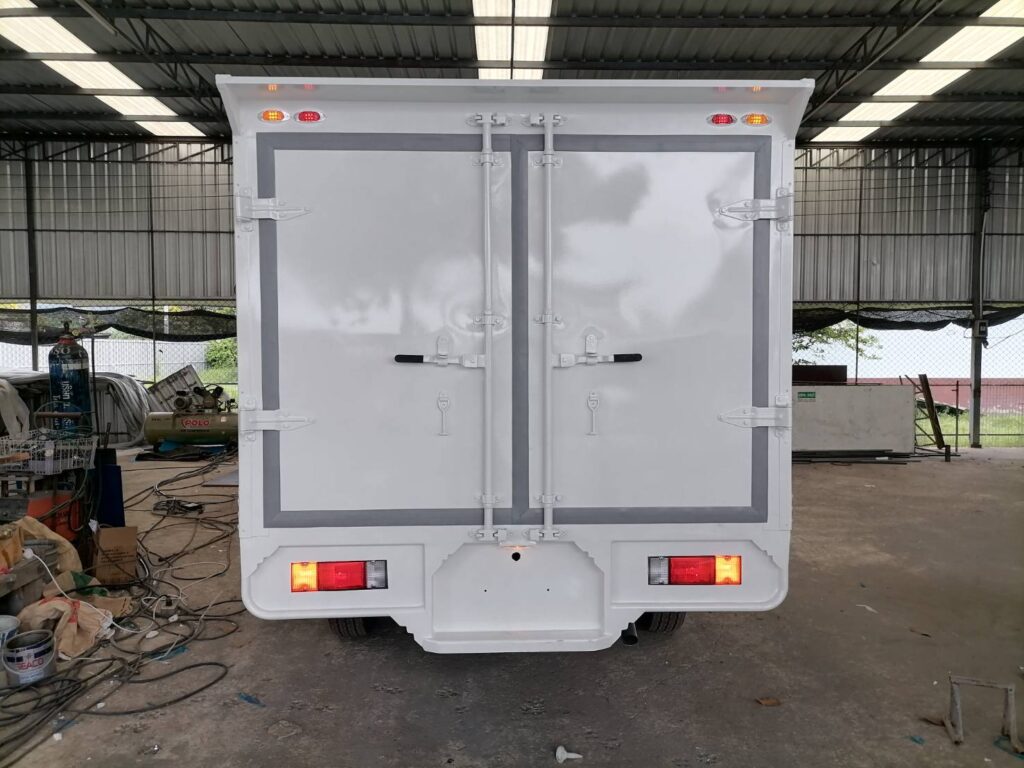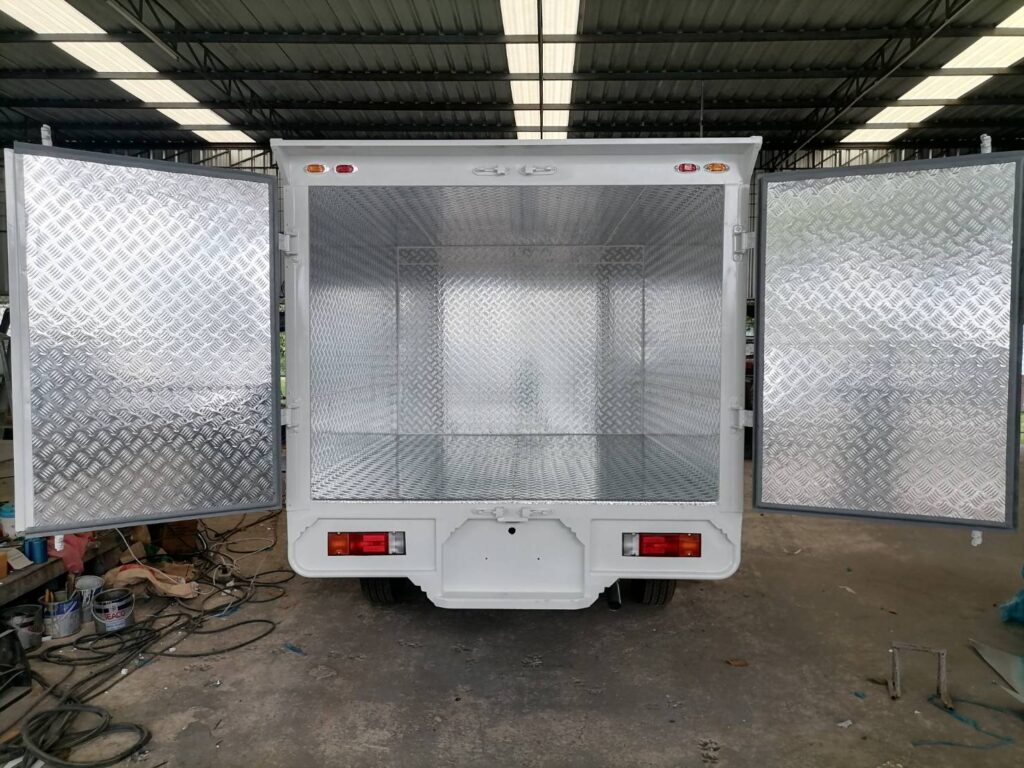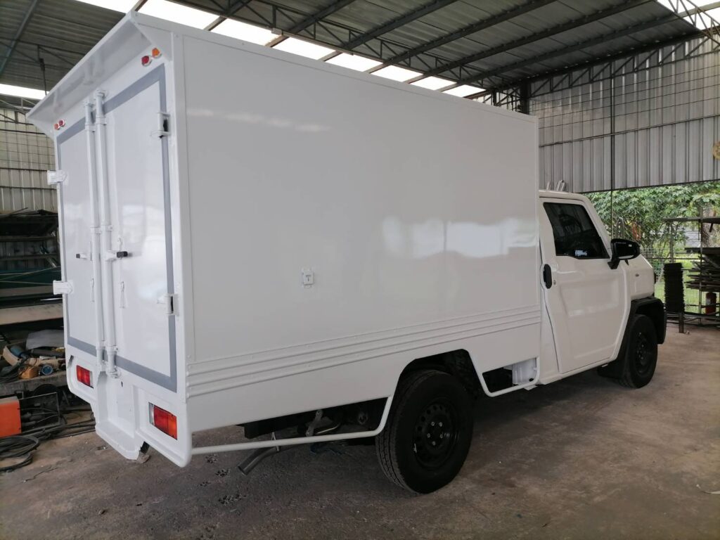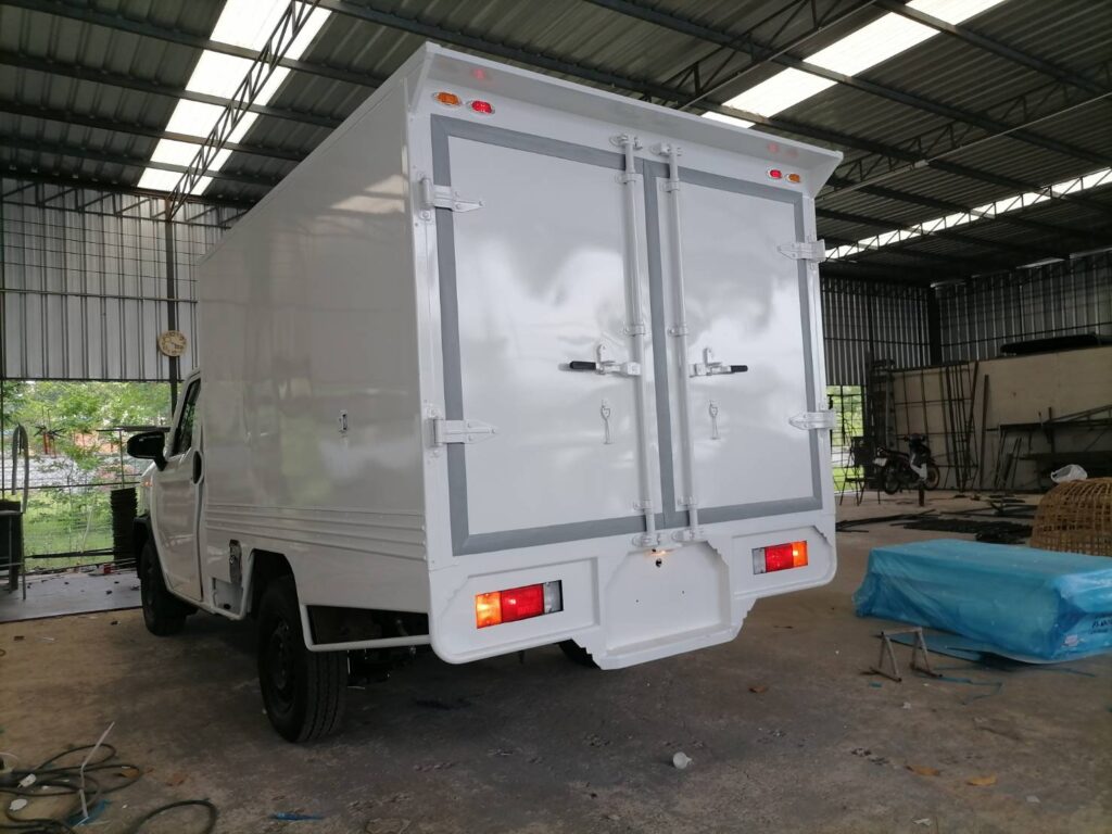 ไฮลักซ์แชมป์ ตู้แห้งครึ่งใบ hilux champ, ตู้แห้ง, ตู้แห้งครึ่งใบ, ไฮลักซ์แชมป์ โครงสร้างเป็นเหล็กแป๊บป้องกันสนิม วัสดุบุหุ้มด้านนอกและในด้วยแผ่นอลูมิเนียม และโฟมฉนวนกันความร้อน หมวกลูลมด้านหน้าเป็นไฟเบอร์ ประตูท้ายเปิดออกข้าง 2 บาน ซ้าย ขวา ล็อคด้วยเขี้ยวคู่ขนาน…