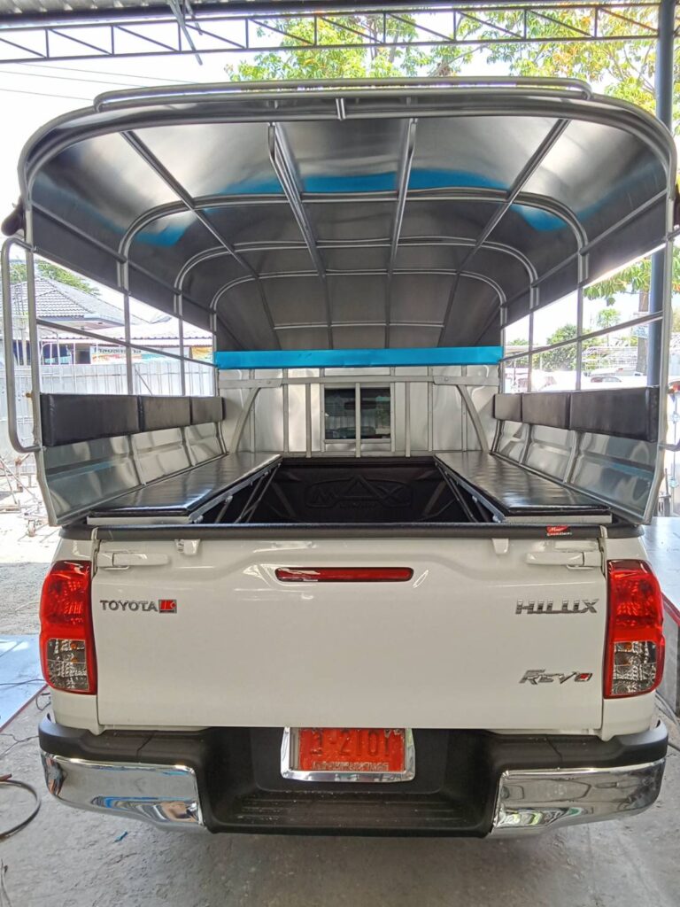 หลังคาสองแถวทรงสูง หัวยื่นไปถึงหน้ากระจก  รถกระบะช่วงยาว