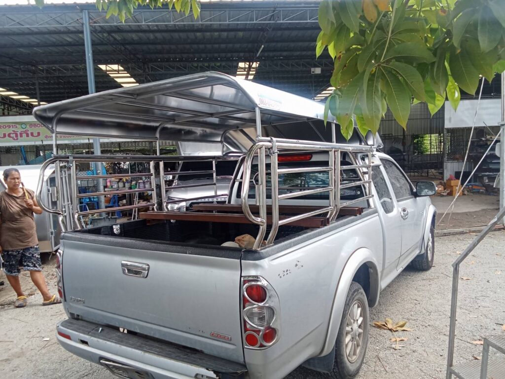หลังคาสวมคอก+คอกสแตนเลส สวมคอก หลังคารถกระบะแบบถอดได้ วัสดุเป็นโครงเหล็กแปีบขนาด 1/2 นิ้ว ทำสีรองพื้นและสีบรอนด์ หุ้มด้วยวัสดุแผ่นอลูมิเนียมเกรด 1100 หนา 0.65 มิลลิเมตร…