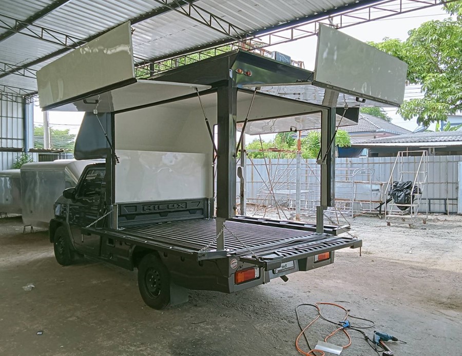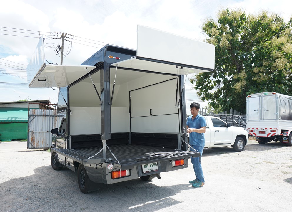 ไฮลักซ์แชมป์ ตู้แห้งครึ่งใบ hilux champ, ตู้แห้ง, ตู้แห้งครึ่งใบ, ไฮลักซ์แชมป์ โครงสร้างเป็นเหล็กแป๊บป้องกันสนิม วัสดุบุหุ้มด้านนอกและในด้วยแผ่นอลูมิเนียม และโฟมฉนวนกันความร้อน หมวกลูลมด้านหน้าเป็นไฟเบอร์ ประตูท้ายเปิดออกข้าง 2 บาน ซ้าย ขวา ล็อคด้วยเขี้ยวคู่ขนาน…