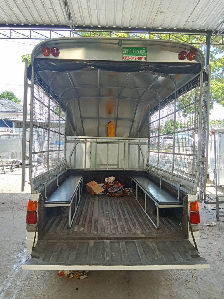 หลังคารถกระบะ ความสูงวัดจากพื้นกระบะ ถึงหลังคาบนสุด 1.80 เมตร ความกว้างวัดนอก 1.70 เมตร ความสูงวัดจากพื้นดินถึงหลังคาบนสุด 2.40 เมตร โครงสร้างของหลังคาทำด้วยเหล็กแป๊บขนาด 1/2 นิ้ว ทำสีบรอนด์ หลังคาหุ้มด้วยแผ่นอลูมิเนียมเกรด 1100 หนา 0.65 มิลลิเมตร ป้องกันสนิม ด้านข้างซ้าย ขวา เป็นตาข่ายเหล็กป้องกันสนิมพร้อมทำสีบรอนด์ ประตูท้ายเปิดออกข้าง ซ้าย ขวา ล๊อคด้วยกลอนตรงกลาง ผ้าใบสีดำ ด้านซ้าย ขวา ประตูท้าย ไฟท้ายหลังคาเป็นไฟหลี่ ไฟเลี้ยวตามขนส่งกำหนด พิเศษมีเบาะนั่งซ้าย ขวา สามารถติดตั้งและถอดออกได้ง่าย