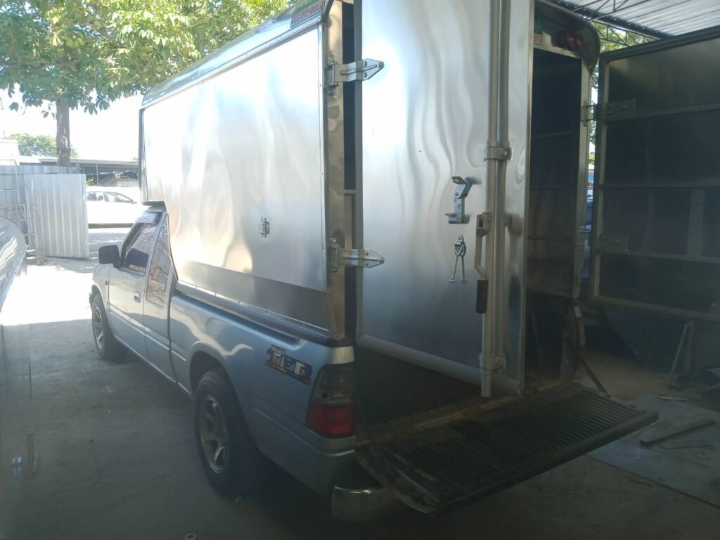 โครงสร้างของหลังคาทำด้วยเหล็กแป๊บขนาด 1/2 นิ้ว ทำสีบรอนด์ หลังคาหุ้มด้วยแผ่นอลูมิเนียมเกรด 1100 หนา  0.65 มิลลิเมตร ป้องกันสนิม ด้านข้างซ้าย ขวา เป็นตาข่ายเหล็กป้องกันสนิมพร้อมทำสีบรอนด์ ประตูท้ายเปิดออกข้าง ซ้าย ขวา ล๊อคด้วยกลอนตรงกลาง ผ้าใบสีดำ ด้านซ้าย ขวา ประตูท้าย ไฟท้ายหลังคาเป็นไฟหลี่ ไฟเลี้ยวตามขนส่งกำหนด