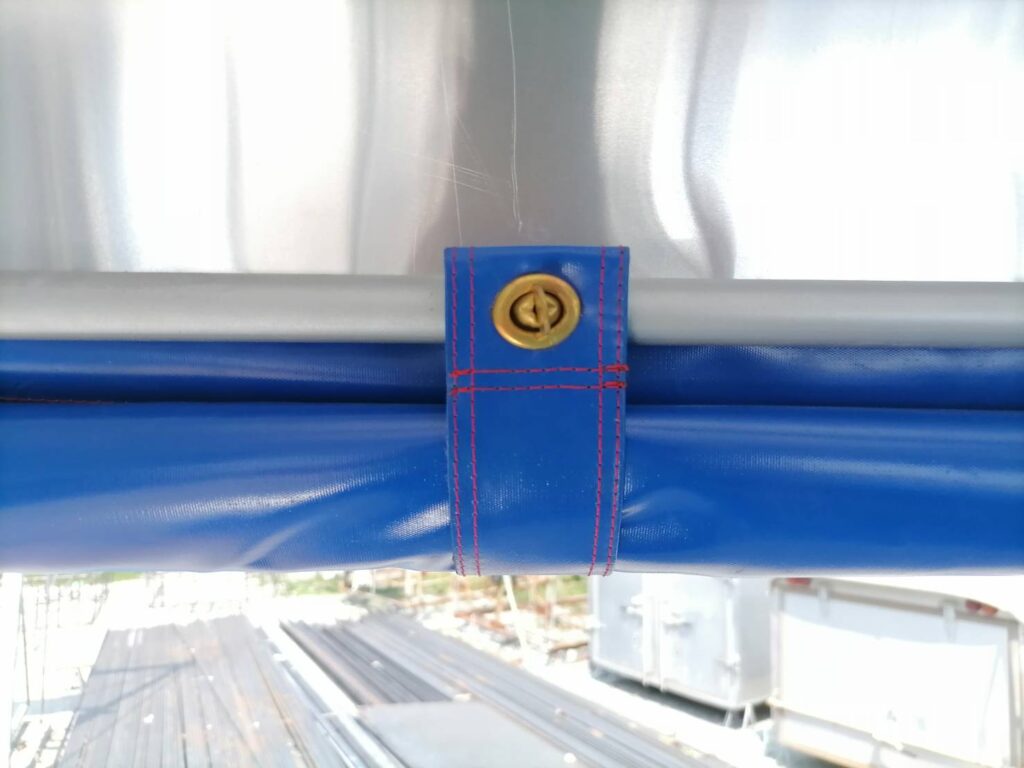 ผ้าใบพีวีซีหนาพิเศษ สีฟ้าเข้ม ด้านซ้าย และขวา สามารถม้วนเก็บได้
