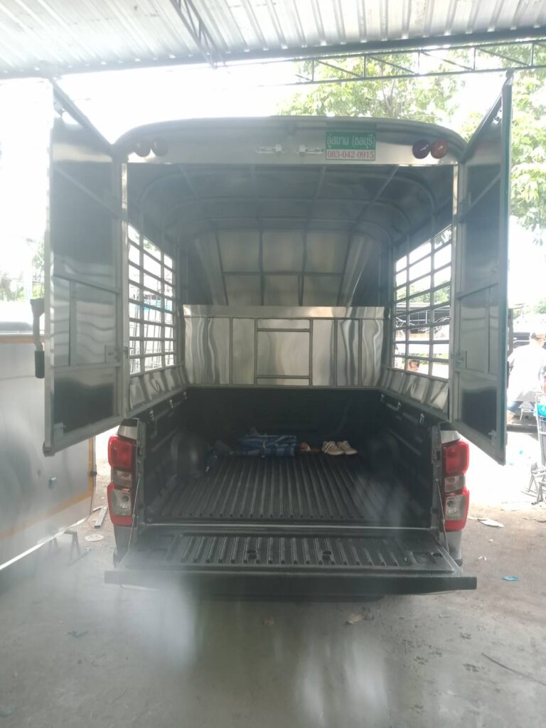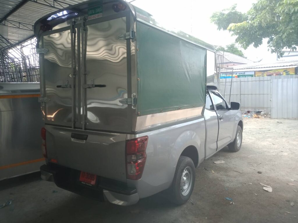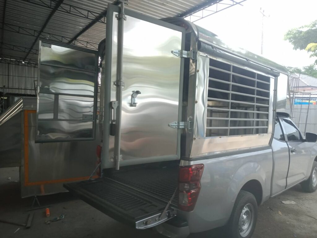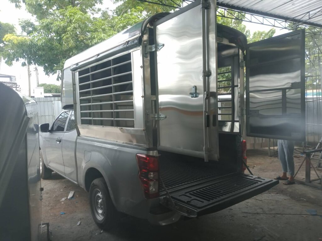 ความสูงหลังคาวัดจากพื้นกระบะถึงบบนสุด 1.80 เมตร และวัดจากพื้นดินถึงบนสุด 2.50 เมตรโครงสร้างของหลังคาทำด้วยเหล็กแป๊บขนาด 3/4 นิ้ว ทำสีบรอนด์ หลังคาหุ้มด้วยแผ่นอลูมิเนียมเกรด 1100 หนา 0.65 มิลลิเมตร ป้องกันสนิม ด้านข้างซ้าย ขวาโครงเหล็กขนาด 1/2 นิ้วพร้อมทำสีบรอนด์ ประตูท้ายเปิดออกข้าง ซ้าย ขวา ล๊อคด้วยกลอนตรงกลาง ผ้าใบสีเทา ด้านซ้าย ขวา ประตูท้ายปิดทึบเปิดออกข้าง ซ้าย ขวา ไฟท้ายหลังคาเป็นไฟหลี่ ไฟเลี้ยวตามขนส่งกำหนด ออกแบบได้ตามความต้องากรของลูกค้า