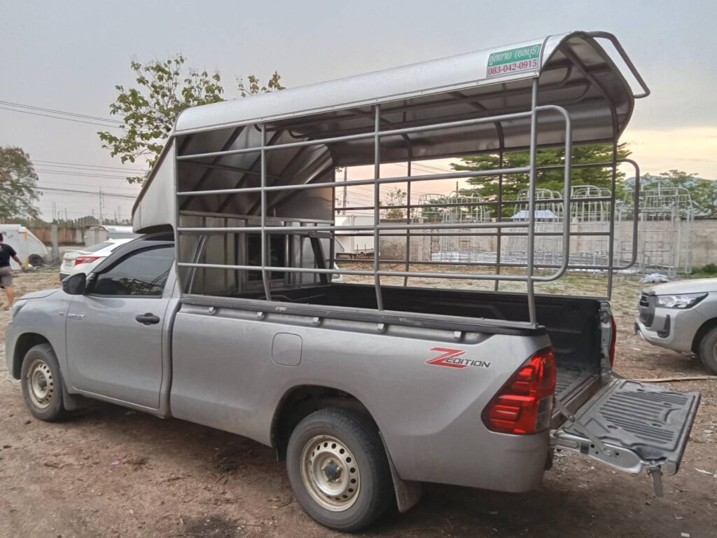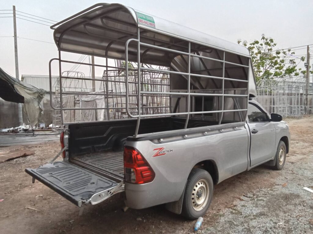 หลังคาโล่ง หลังคาโล่ง ***ไม่มีประตูท้าย ราวจับด้านท้าย ด้านข้างหุ้มและเจาะช่อง หลังคารถกระบะ ติดตั้งกับรถกระบะตอนครึ่ง ขนาดความสูงจากพื้นกระบะถึงหลังคาบนสุด 2.10 เมตร โครงสร้างเป็นเหล็กแป๊บดำขนาด 1/2…