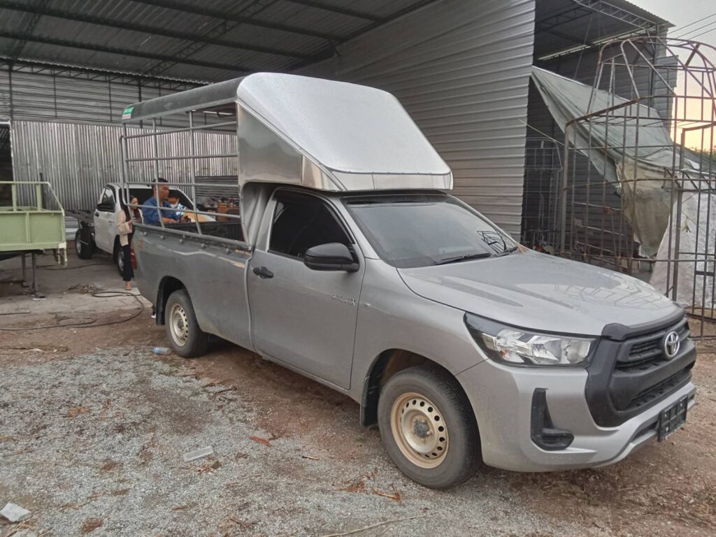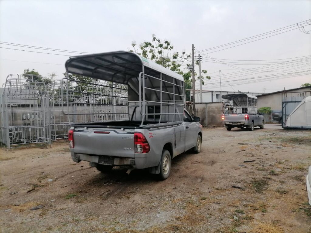 หลังคารถ มีผ้าใบด้านข้าง ขายไก่หมุน หลังคาโล่ง หลังคาสูงจากพื้นกระบะถึงหลังคาบนสุด 2.10 เมตร โครงสร้างของหลังคาทำด้วยเหล็กแป๊บขนาด 1/2 นิ้ว ทำสีบรอนด์ หลังคาหุ้มด้วยแผ่นอลูมิเนียมเกรด 1100 หนา …