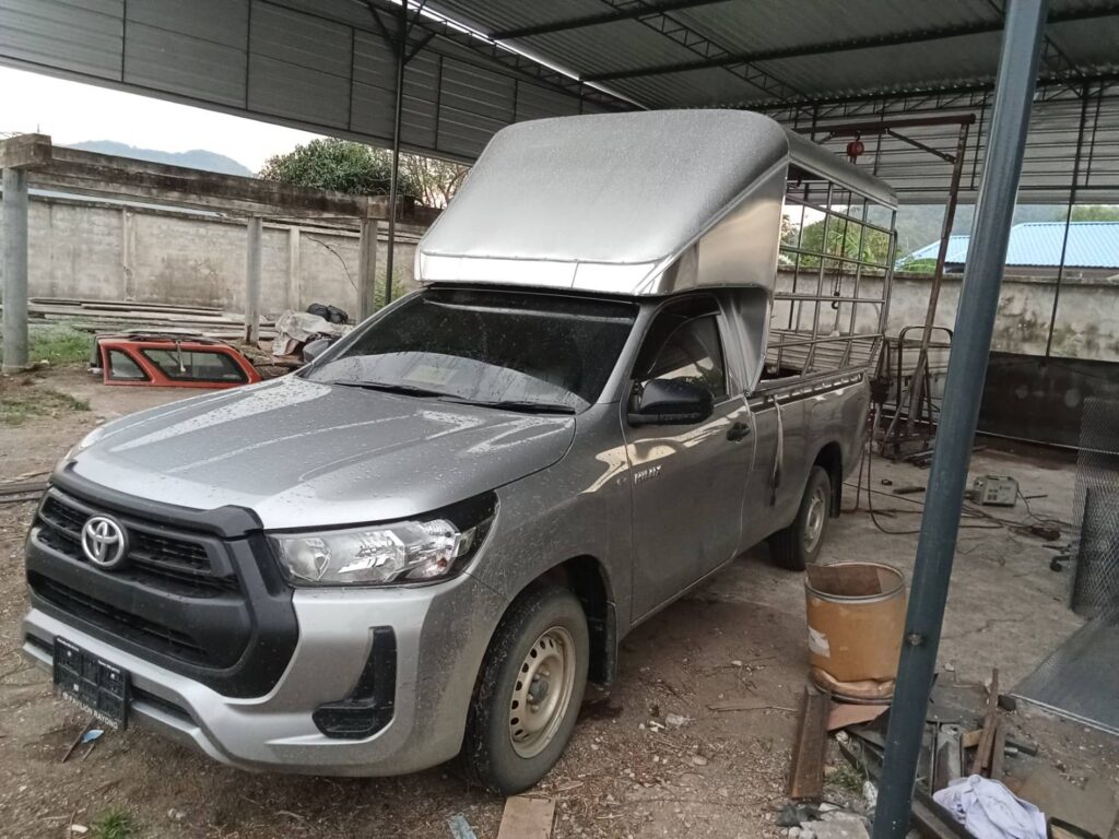 รถกระบะช่วงยาว หลังคาด้านข้างโล่ง หลังคาโล่ง ความสูงหลังคาวัดจากพื้นกระบะถึงบบนสุด 1.80 เมตร และวัดจากพื้นดินถึงบนสุด 2.50 เมตรโครงสร้างของหลังคาทำด้วยเหล็กแป๊บขนาด 1/2 นิ้ว ทำสีบรอนด์ หลังคาหุ้มด้วยแผ่นอลูมิเนียมเกรด…