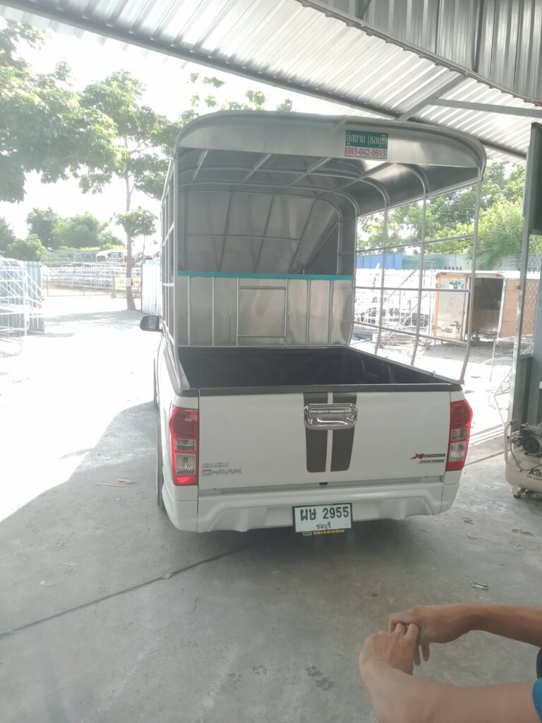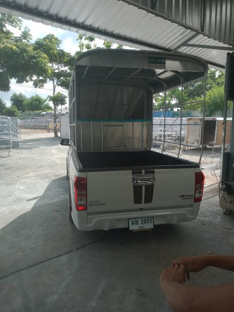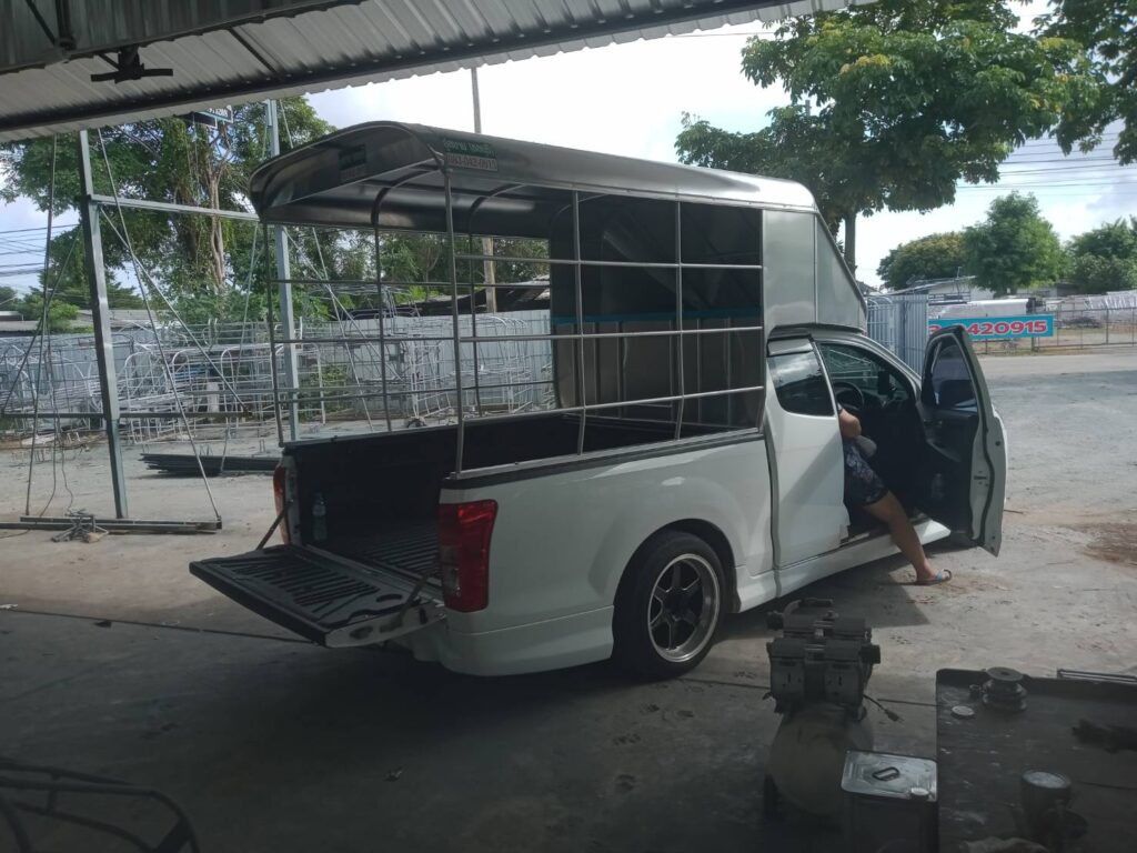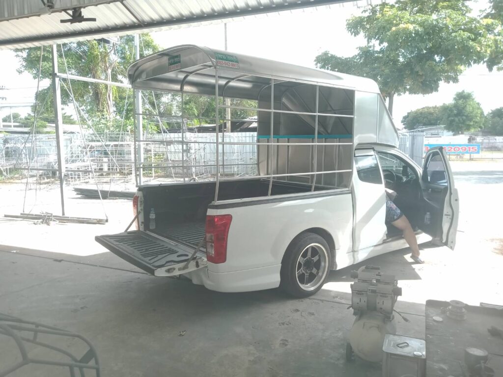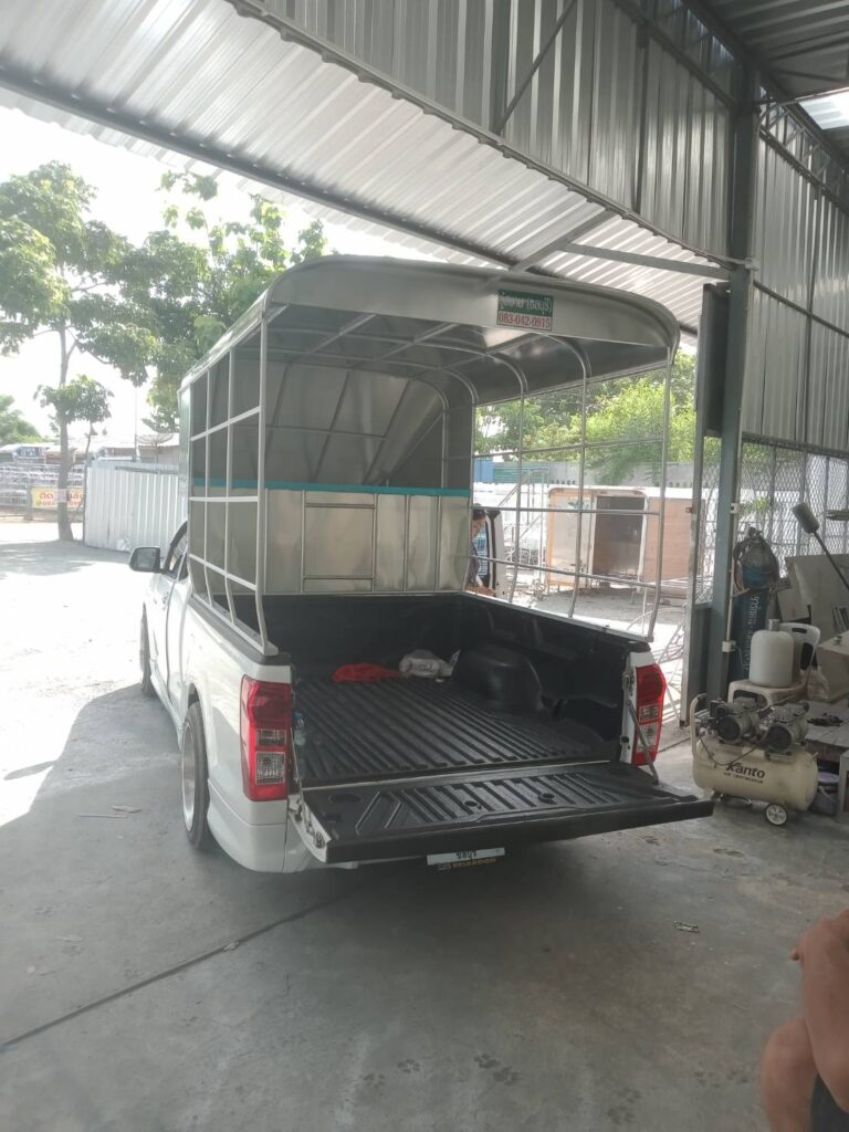 หลังคารถ มีผ้าใบด้านข้าง ขายไก่หมุน หลังคาโล่ง หลังคาสูงจากพื้นกระบะถึงหลังคาบนสุด 2.10 เมตร โครงสร้างของหลังคาทำด้วยเหล็กแป๊บขนาด 1/2 นิ้ว ทำสีบรอนด์ หลังคาหุ้มด้วยแผ่นอลูมิเนียมเกรด 1100 หนา …