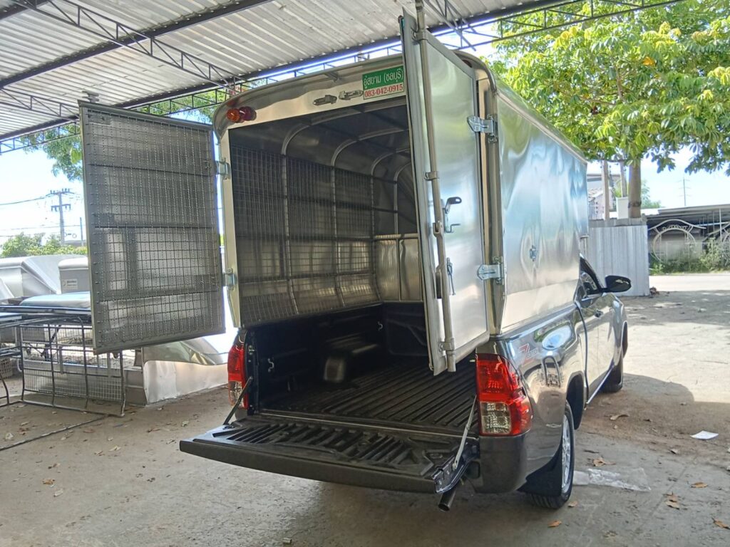หลังคารถกระบะ ติดตั้งกับรถกระบะ ตอนเดียว ขนาดความสูงจากพื้นกระบะถึงหลังคาบนสุด 2.10 เมตร โครงสร้างเป็นเหล็กแป๊บดำขนาด 1/2 นิ้ว วัสดุหุ้มเป็นแผ่นอลูมิเนียมเกรด 1100 หนา 0.70 มิลลิเมตร ประตูท้าย เปิดออกข้าง ซ้าย ขวา 2 บาน ไฟท้ายตู้เป็นไฟหลี่ ไฟเลี้ยว