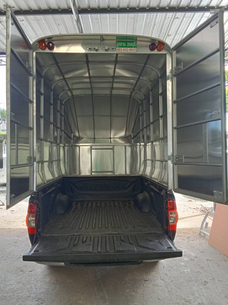 ตู้ทึบ หลังคารถกระบะ+บุด้านในด้วยไม้อัด ตู้ทึบ โครงสร้างเป็นเหล็กแป๊บขนาด 1/2 นิ้ว ทำสีบรอนด์ หุ้มด้วยแผ่นอลูมิเนียมเกรด 1100 หนา 0.65 มิลลิเมตร ด้านในบุด้วยไม้อัดสีน้ำตาลหนา…