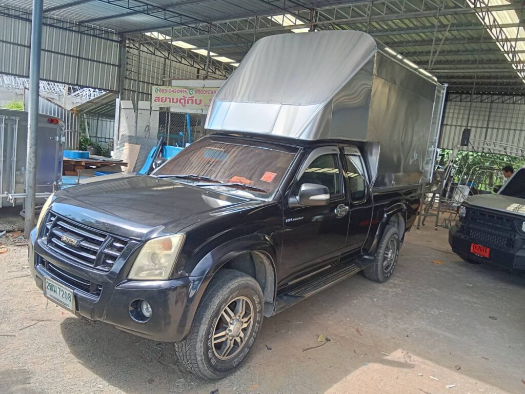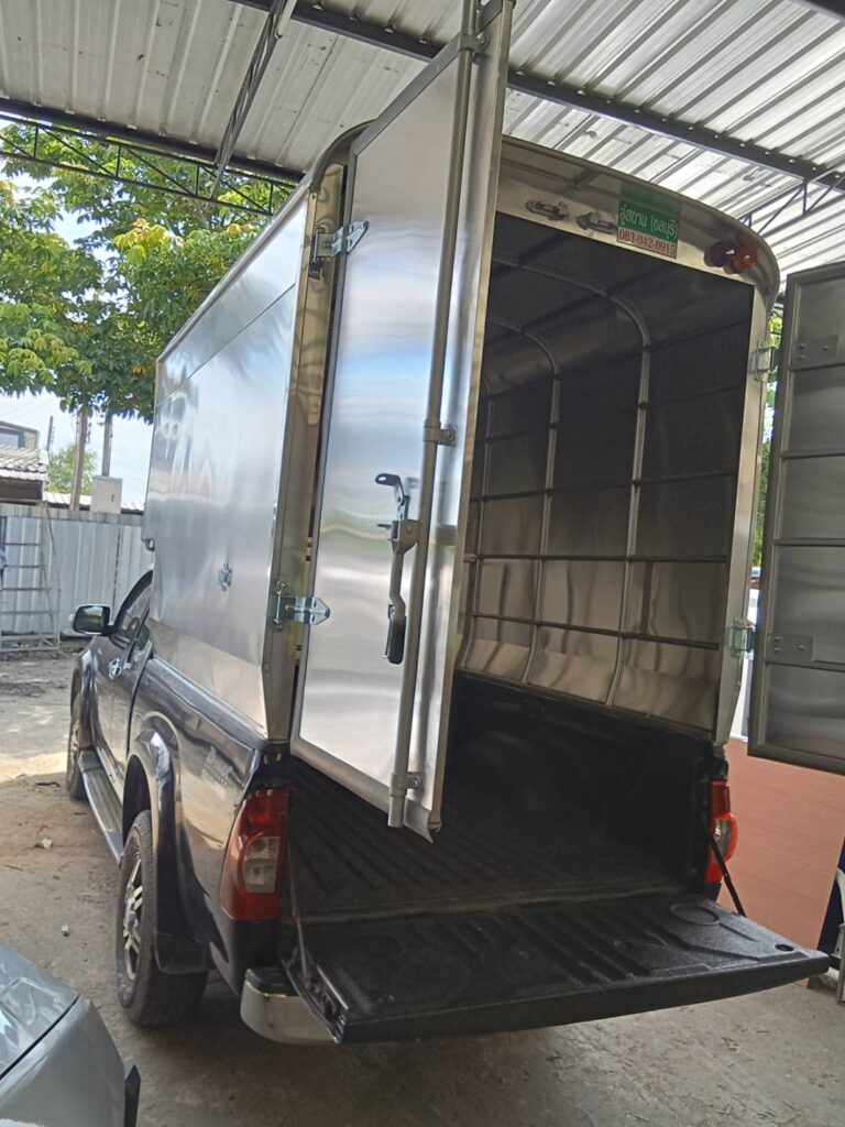 หลังคารถกระบะตู้ทึบตอนเดียว สูง 2.10 เมตร ตู้ทึบ ตู้ทึบหลังคารถกระบะ ช่วงยาว สูงจากพื้นดิจ 2.80 เมตร และสูงจากพื้นกระบะรถ 2.10 เมตร โครงสร้างทั่วไปเป็นเหล็กแป้บทำสีบรอนด์ หุ้มด้านนอกด้วยแผ่นอลูมิเนียมหนา …