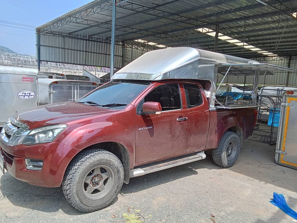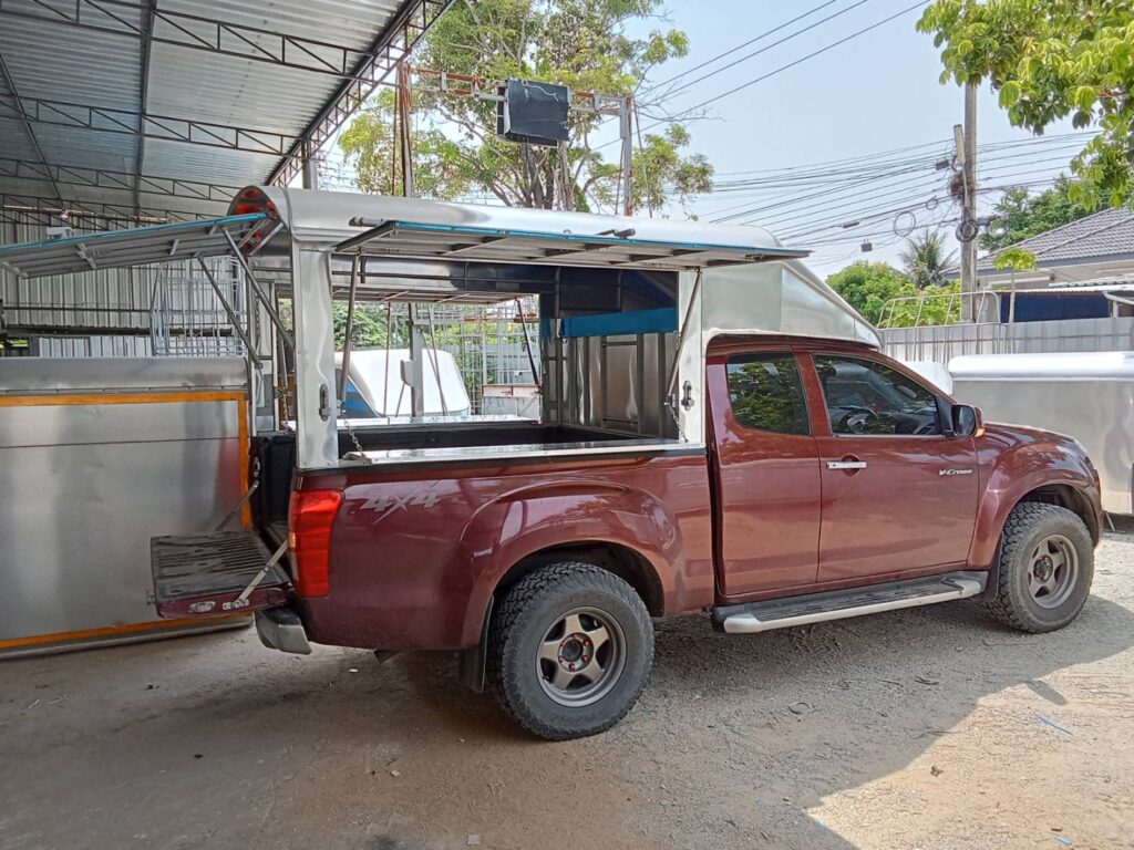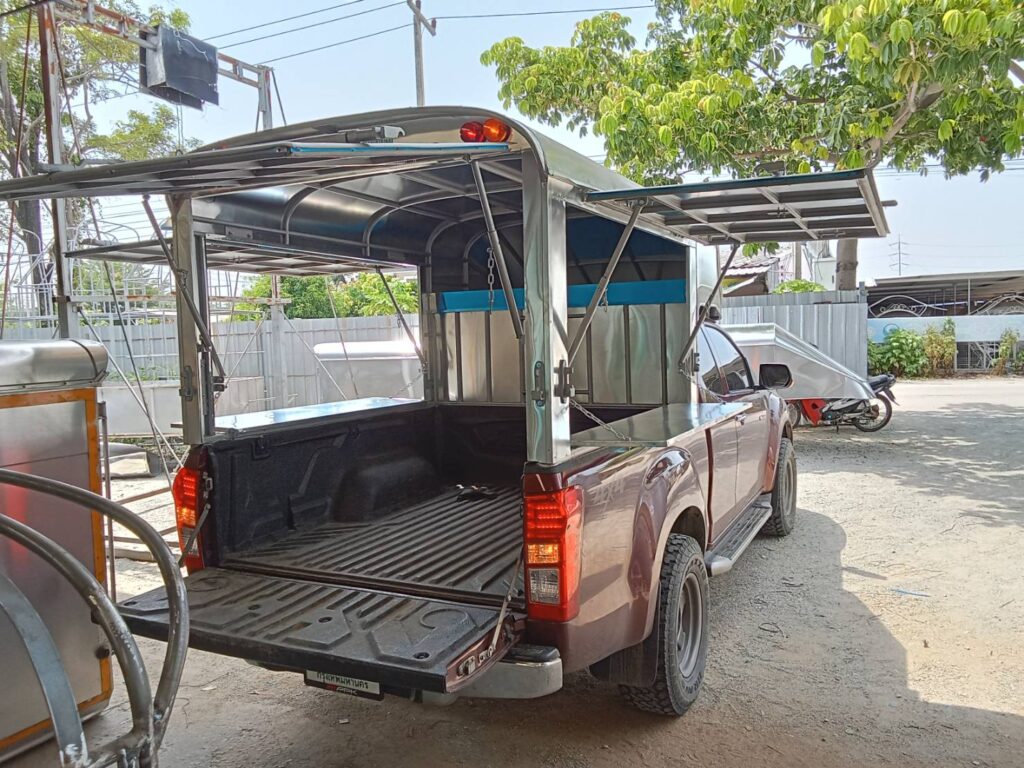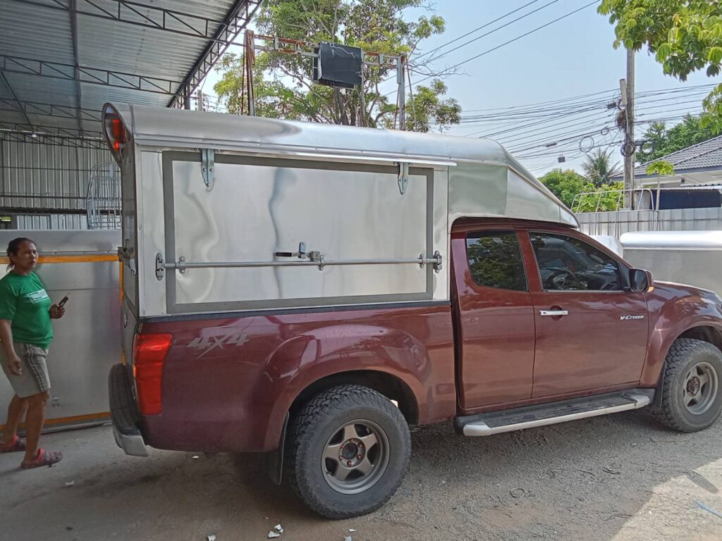 หลังคารถกระบะ ขายของ ขายของ หลังคาอลูมิเนียมความสูง 1.80 เมตร ประตูเปิด 3 ด้าน ซ้าย ขวา ประตูท้าย ประตูเปิดพร้อมพับปีกนก…