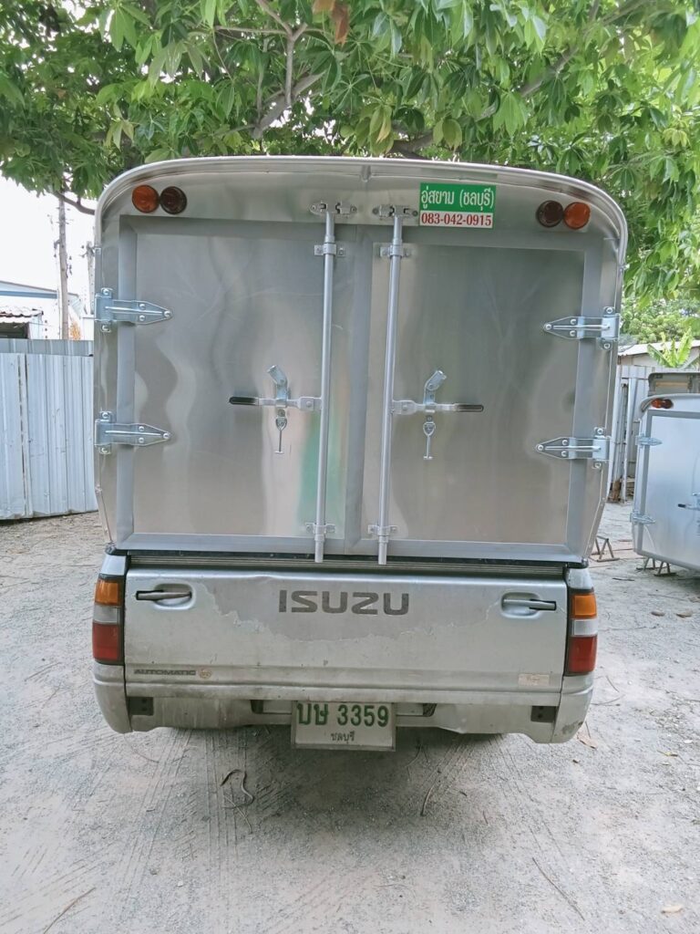 isuzu ตอนครึ่ง ทึบ1.6 / ตู้ทึบ / By อู่สยาม ชลบุรี หลังคารถกระบะ ติดตั้งกับรถกระบะตอนครึ่งขนาดความสูงจากพื้นกระบะถึงหลังคาบนสุด 1.60 เมตรโครงสร้างเป็นเหล็กแป๊บดำขนาด 1/2 นิ้ววัสดุหุ้มเป็นแผ่นอลูมิเนียมเกรด 1100 หนา 0.70 มิลลิเมตรประตูท้าย เปิดออกข้าง ซ้าย ขวา 2 บานไฟท้ายตู้เป็นไฟหลี่ ไฟเลี้ยว