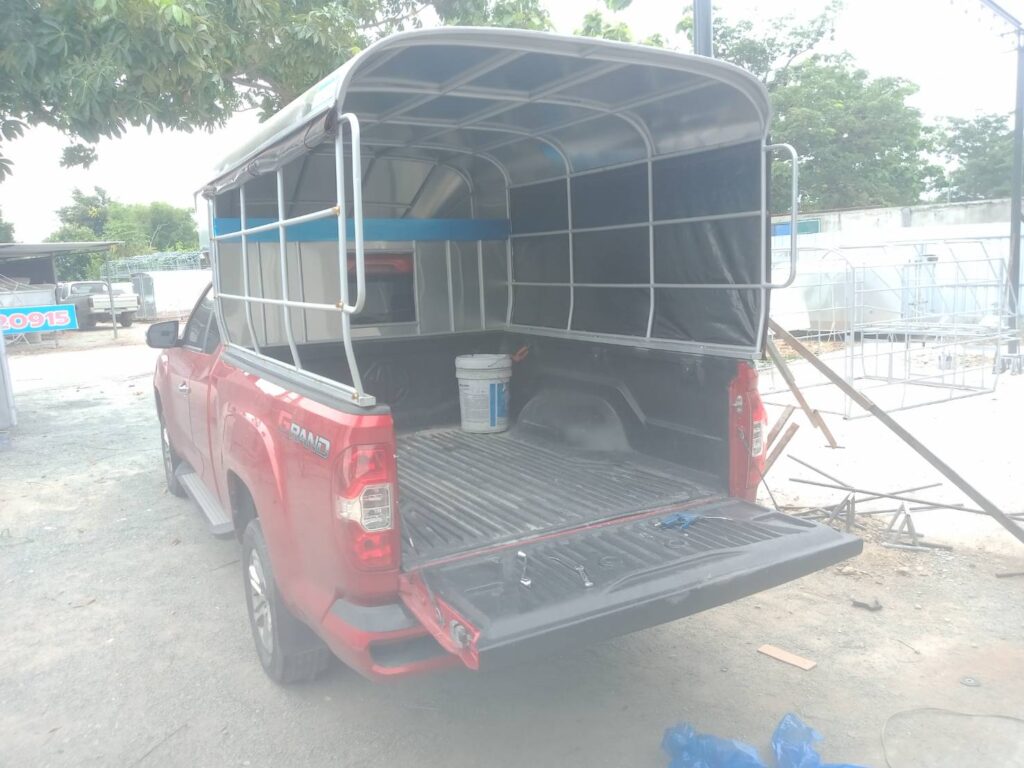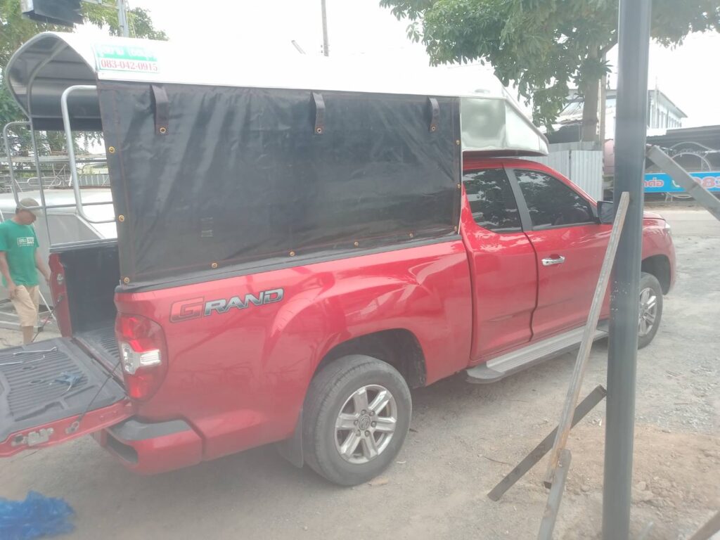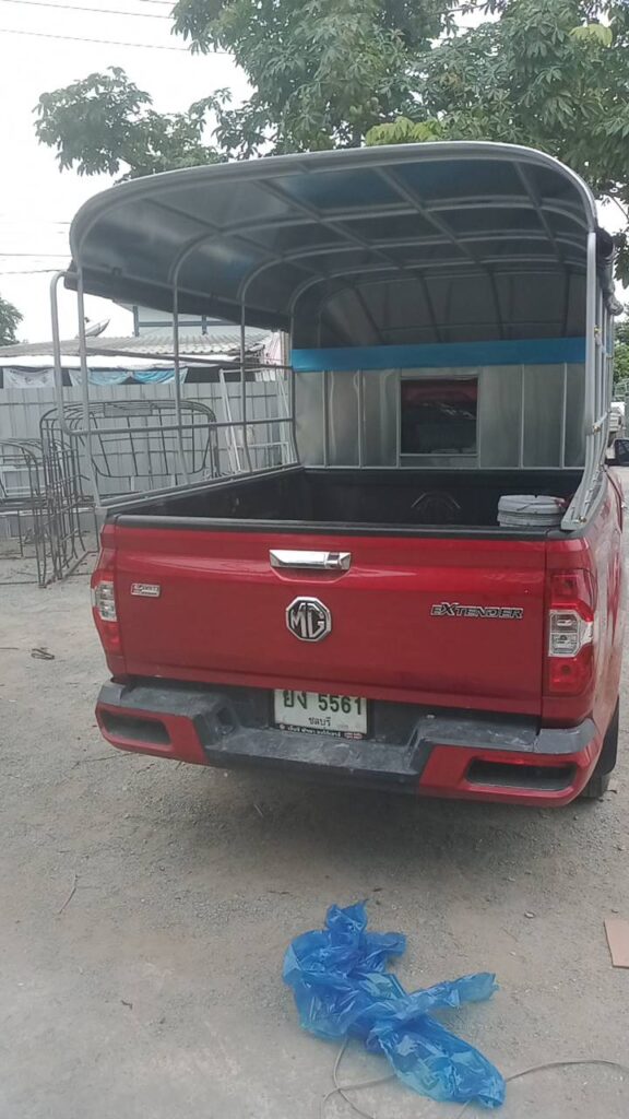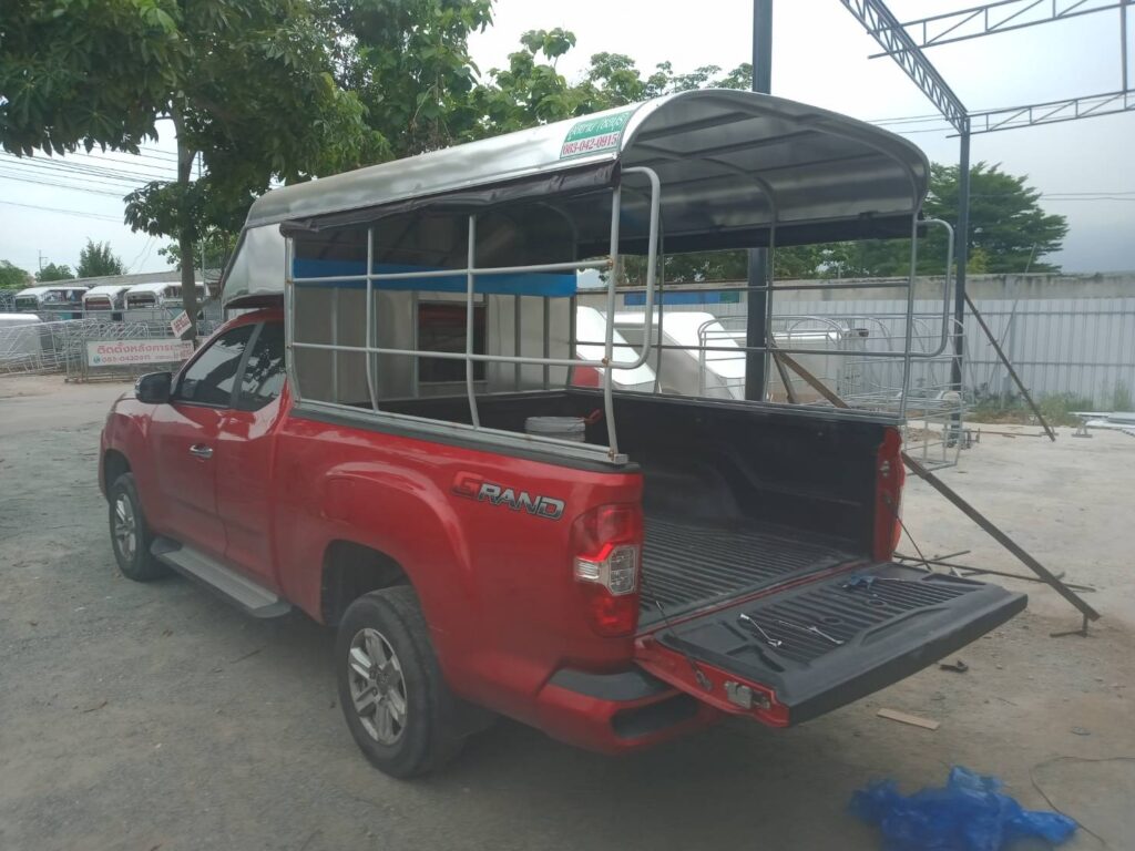 หลังคาสูงจากพื้นกระบะถึงหลังคาบนสุด 1.80 เมตร โครงสร้างของหลังคาทำด้วยเหล็กแป๊บขนาด 1/2 นิ้ว ทำสีบรอนด์ หลังคาหุ้มด้วยแผ่นอลูมิเนียมเกรด 1100 หนา 0.65 มิลลิเมตร ป้องกันสนิม ด้านข้างซ้าย ขวา เป็นโครงเหล็กเหล็ก ทำสีป้องกันสนิมพร้อมทำสีบรอนด์ ด้านท้ายมีราวจับ ซ้าย ขวา ด้านข้างมีผ้าใบซ้าย ขวา ม้วนพับเก็บด้านบน