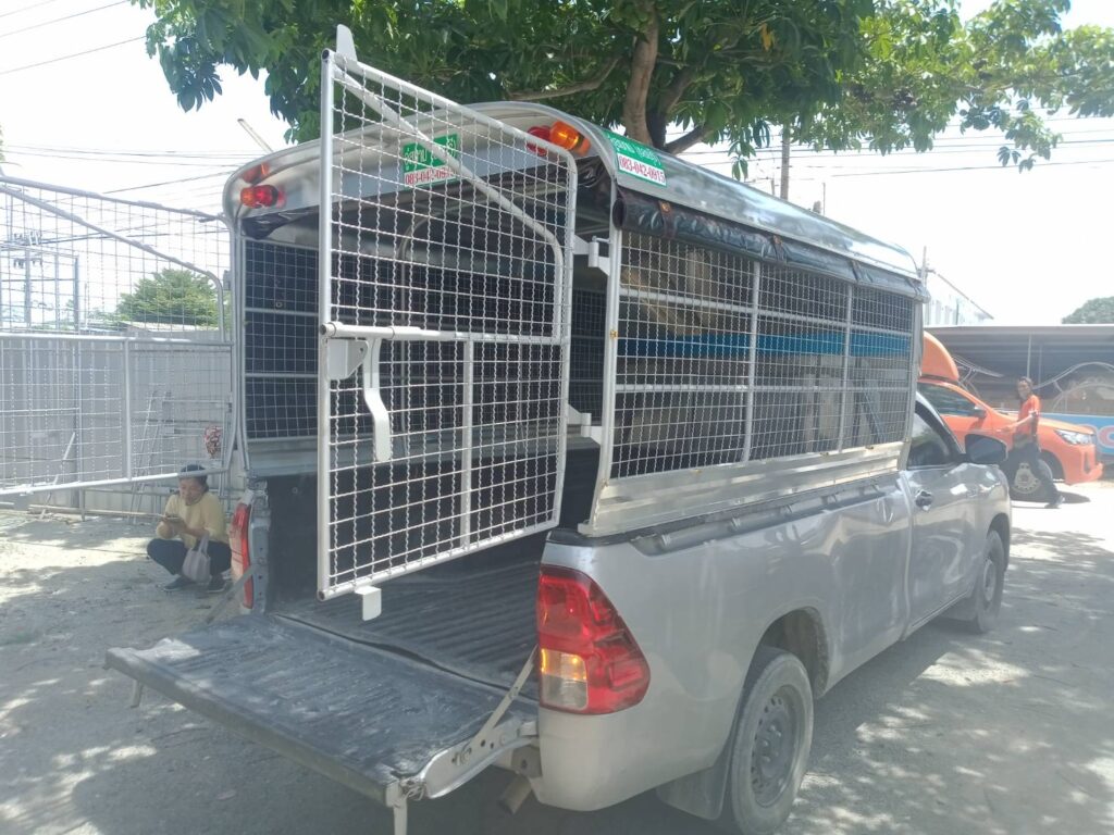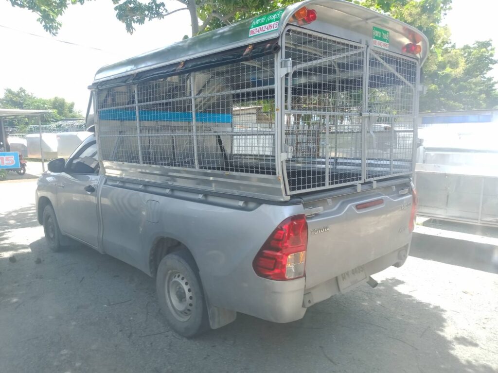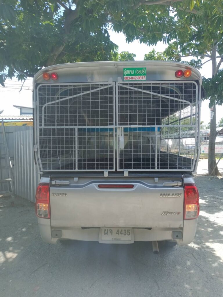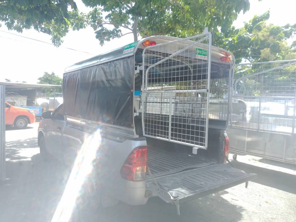 มีช่องลมด้านหน้า สารมารถเปิดและปิดได้ง่าย ใช้งานสะดวก ให้ลมเข้าด้านหน้าโครงสร้างของหลังคาทำด้วยเหล็กแป๊บขนาด 1/2 นิ้ว ทำสีบรอนด์ หลังคาหุ้มด้วยแผ่นอลูมิเนียมเกรด 1100 หนา  0.65 มิลลิเมตร ป้องกันสนิม ด้านข้างซ้าย ขวา เป็นตาข่ายเหล็กป้องกันสนิมพร้อมทำสีบรอนด์ ประตูท้ายเปิดออกข้าง ซ้าย ขวา ล๊อคด้วยกลอนตรงกลาง ผ้าใบสีดำ ด้านซ้าย ขวา ประตูท้าย ไฟท้ายหลังคาเป็นไฟหลี่ ไฟเลี้ยวตามขนส่งกำหนด